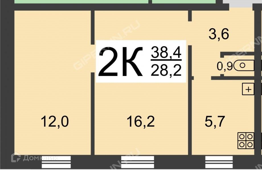 Общая площадь 38.4 м2