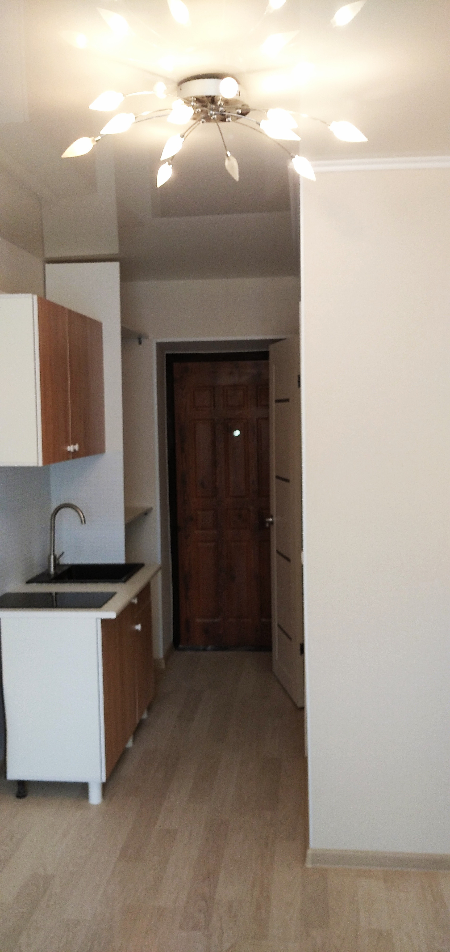 В чистой продаже отличная студия с выделенным санузлом в Ленинском районе с качественным свежим ремонтом (натяжные потолки, окна пвх, новая сантехника, новый бойлер, вывод под стиральную машину). Все удобства есть – душевая, туалет, кухня-прихожая. C/узел совмещенный в плитке