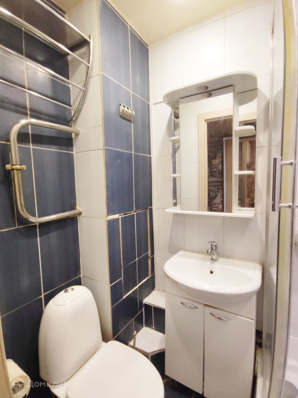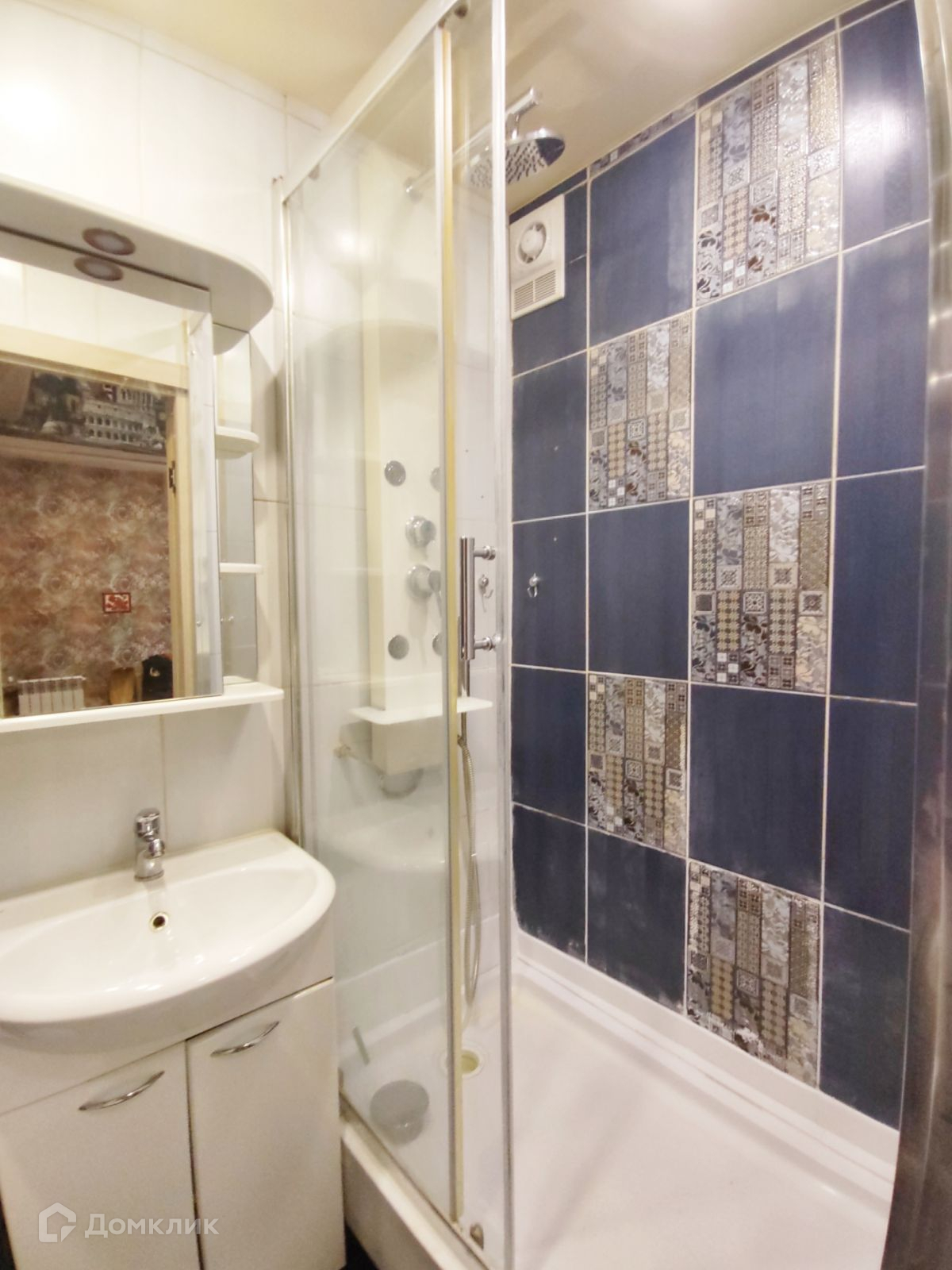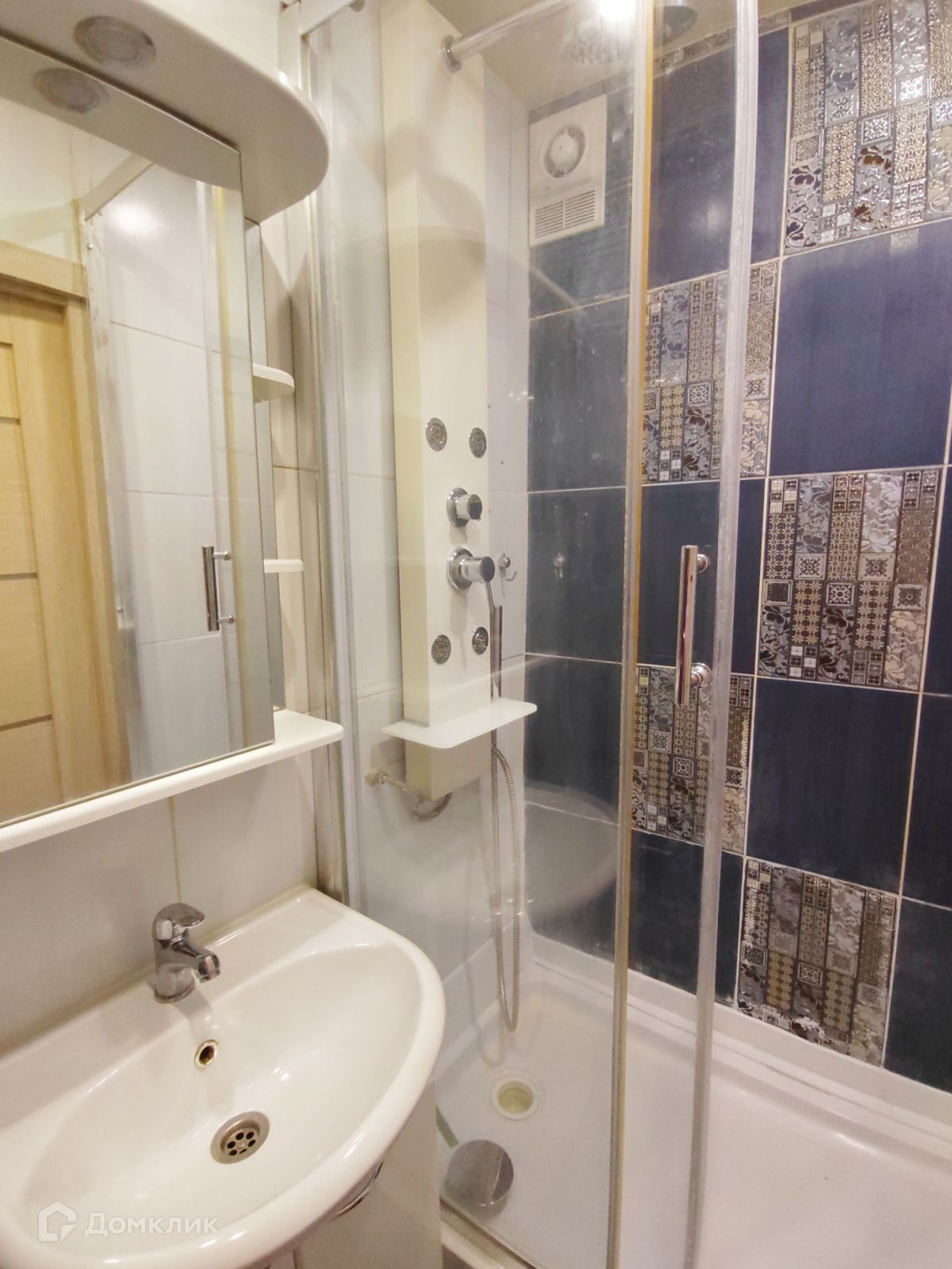 Санузел полностью в кафеле, трубы заменены, работает принудительная система вентиляции. Установлена душевая кабина с душем тропический дождь. Мощный напор воды.