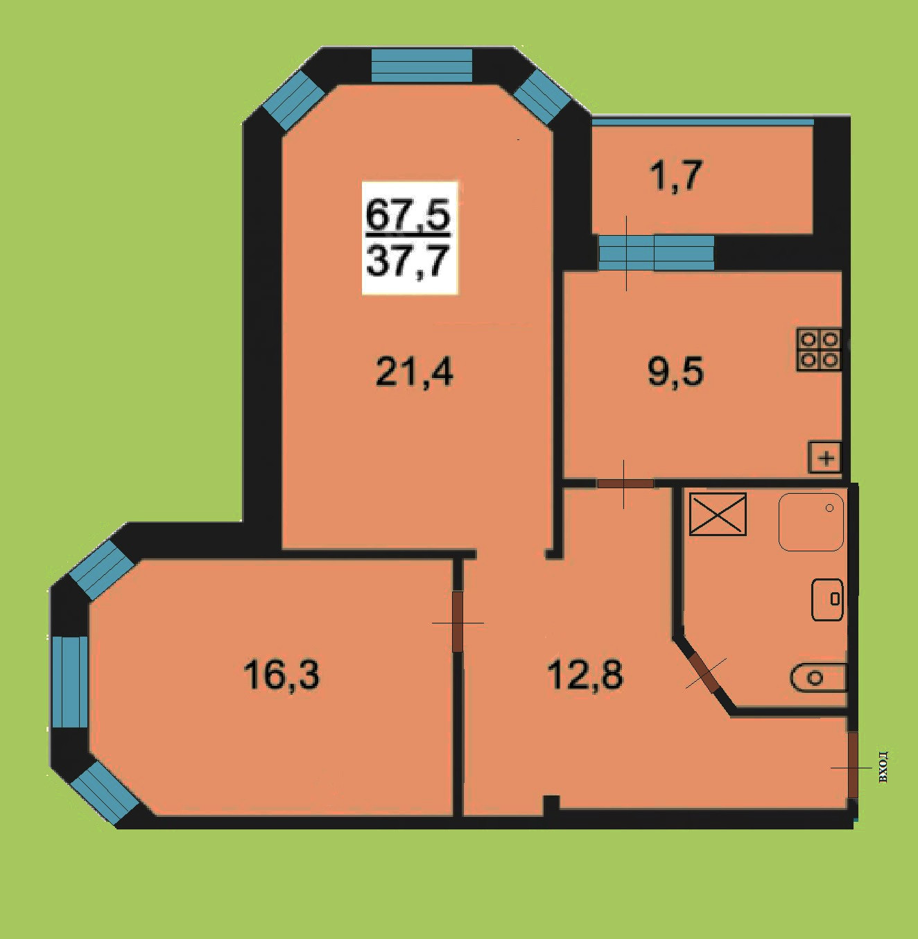 Общая площадь 68 м2