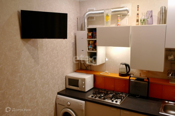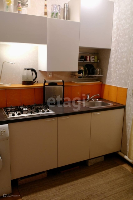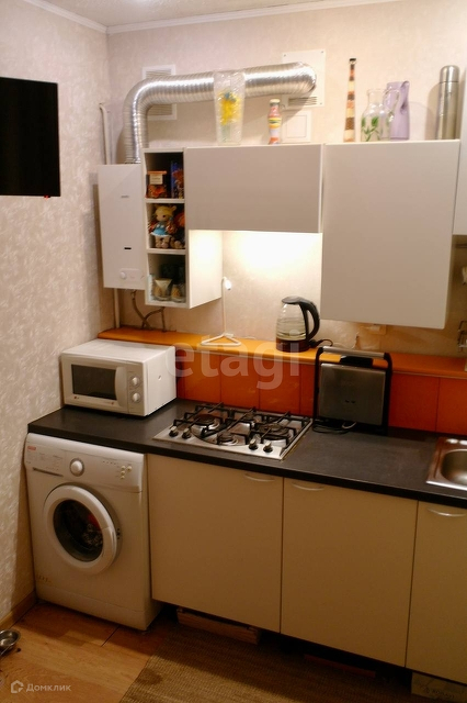 На кухне остаётся кухонный гарнитур , варочная панель, стиральная машина.