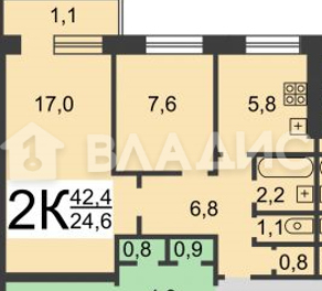 Жилая площадь 25.2 м2