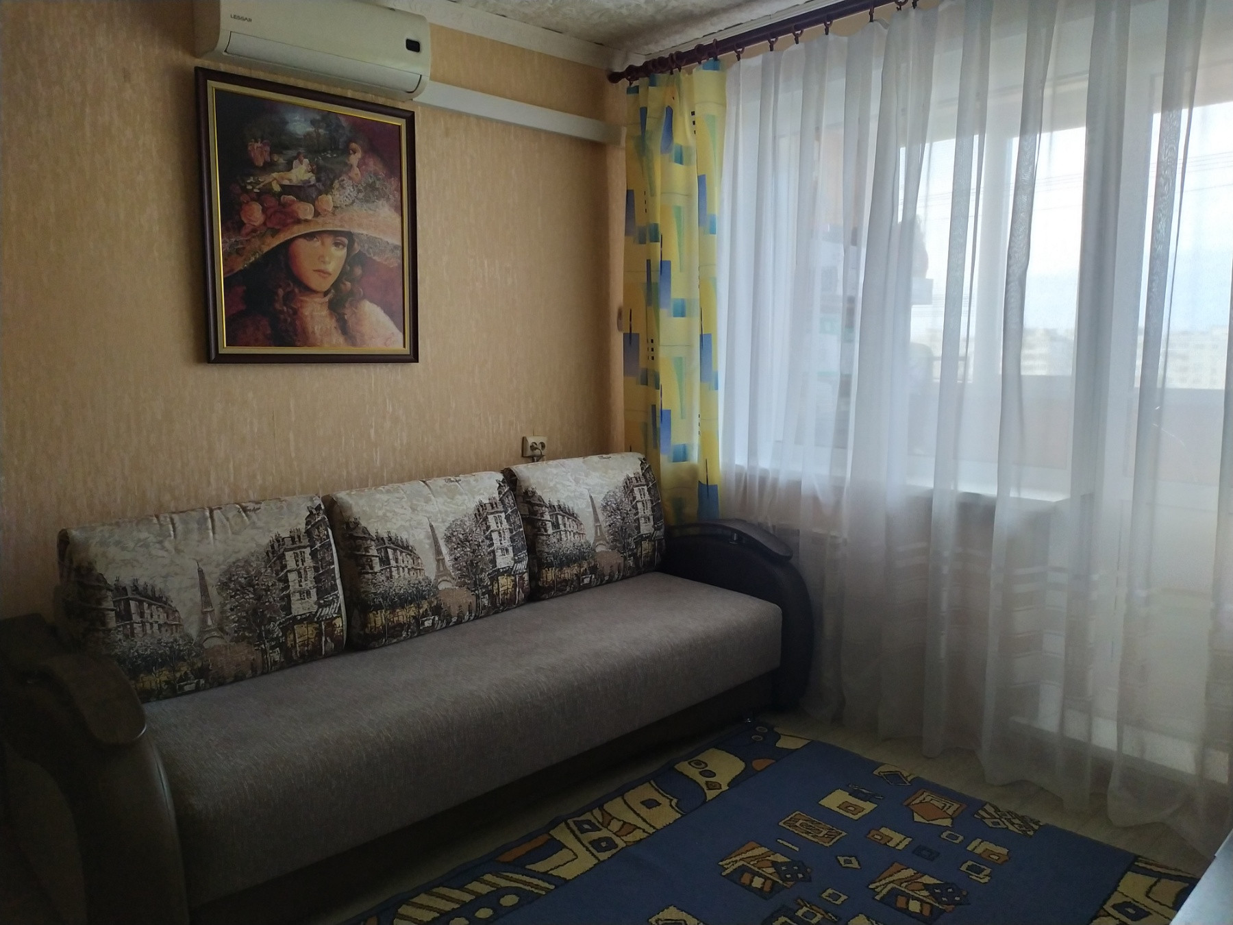 В квартире остается кухонный гарнитур, кондиционер.