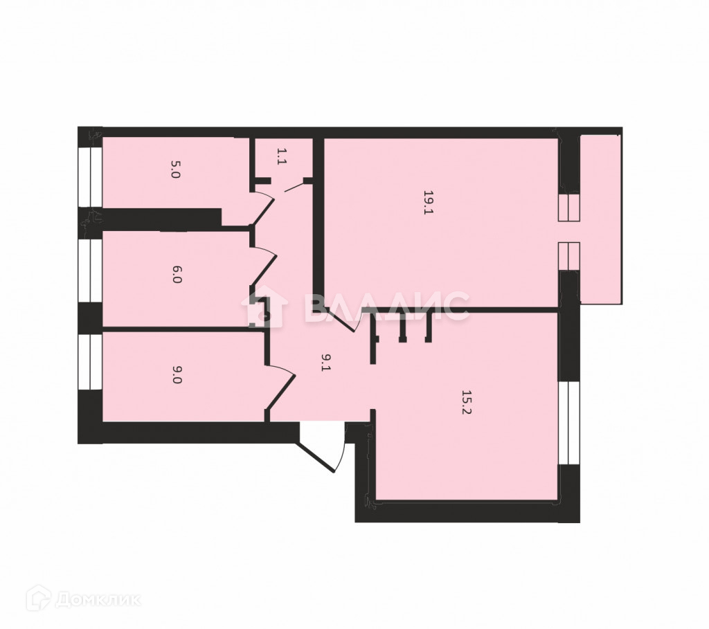 Жилая площадь 43.3 м2