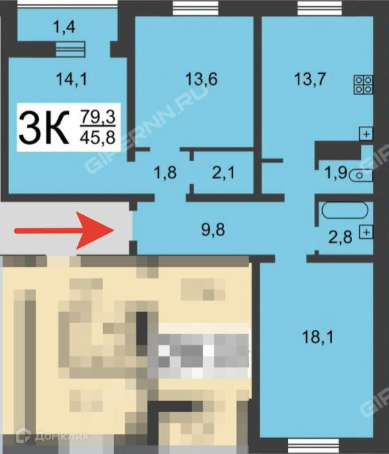В продаже единственная большая трёшка в жилом комплексе, успейте стать обладателем комфортной квартиры для своей семьи