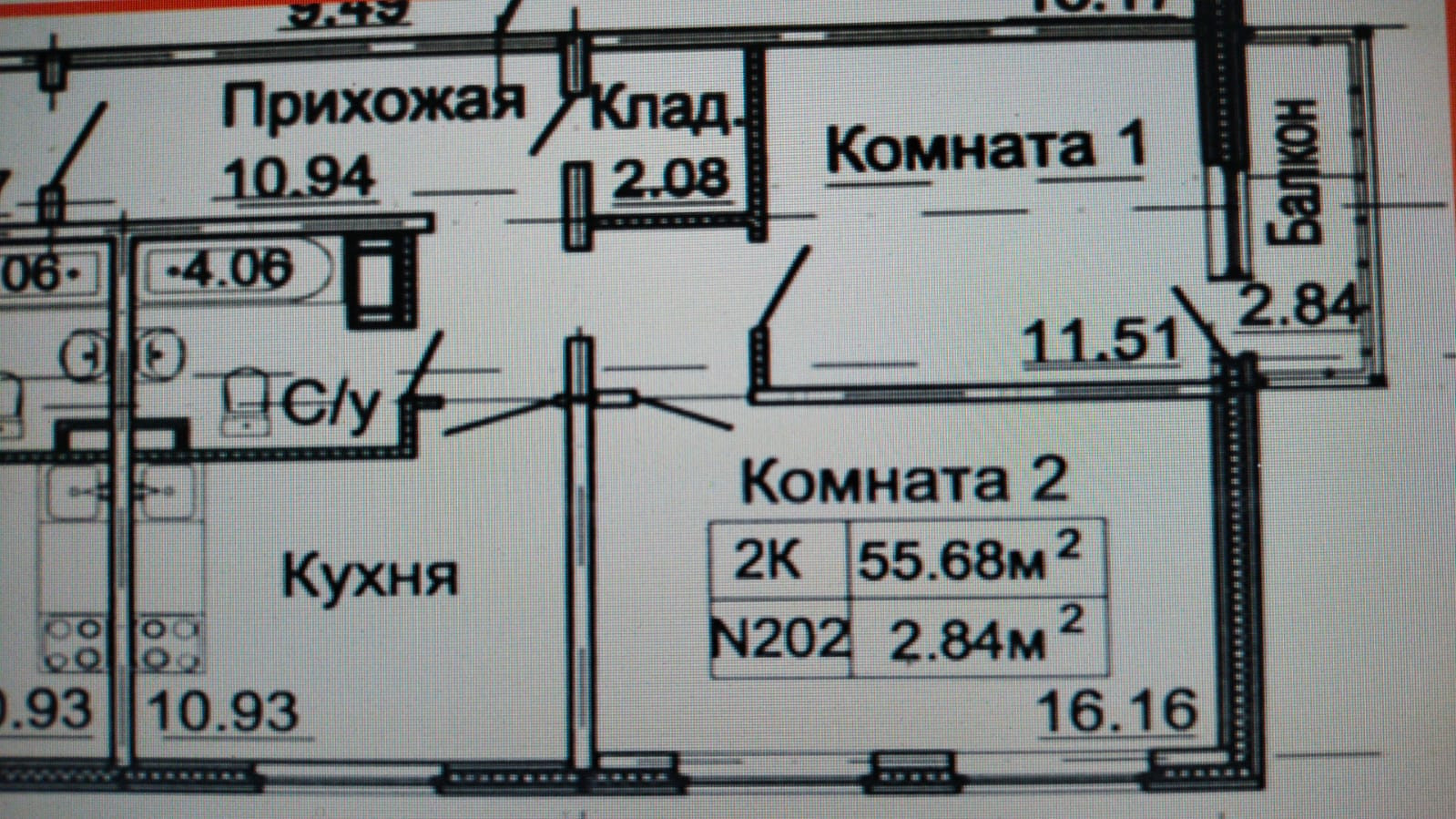 Общая площадь 56 м2