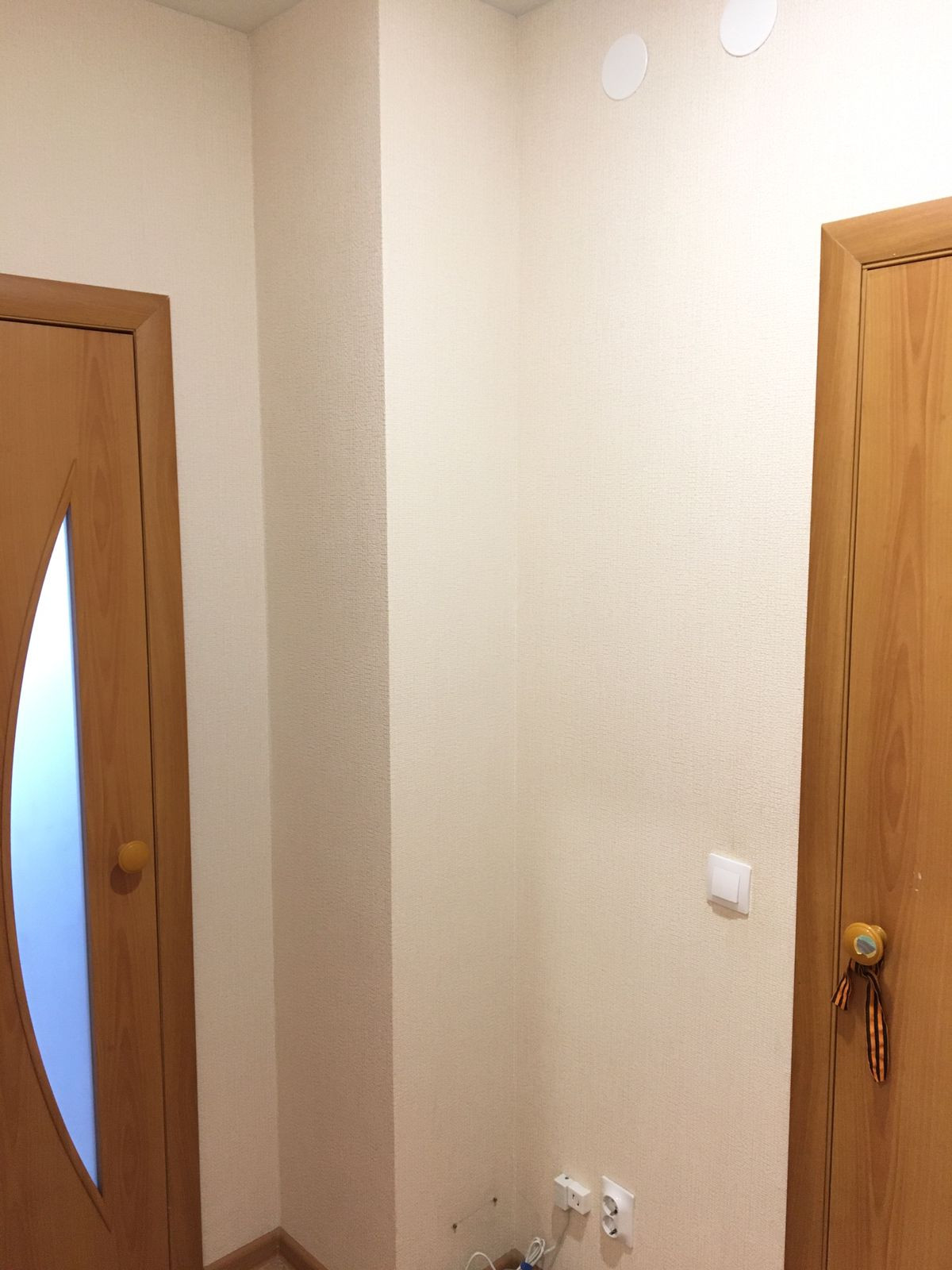 Заменены споты на более яркие и качественные, заменена входная дверь.