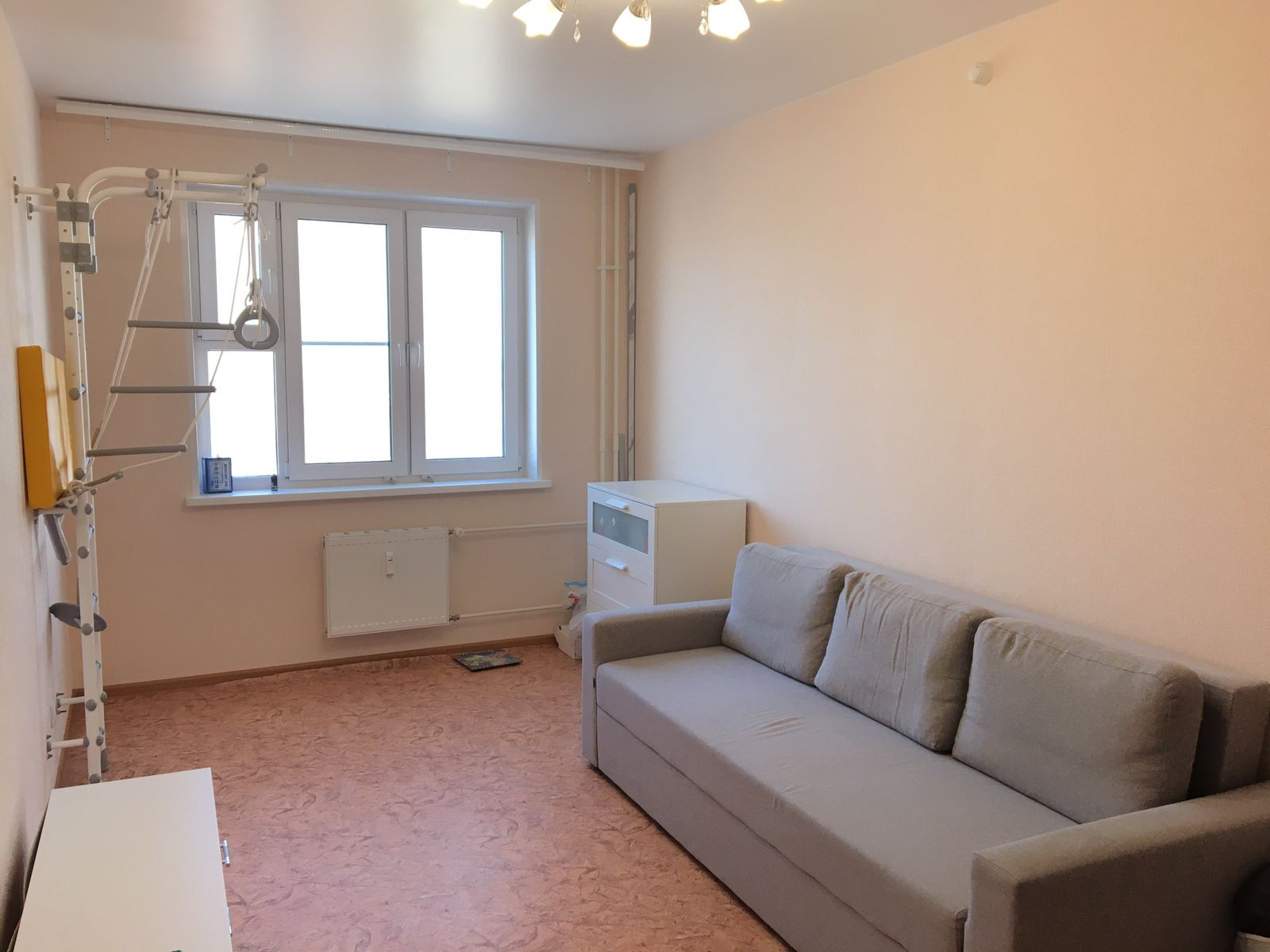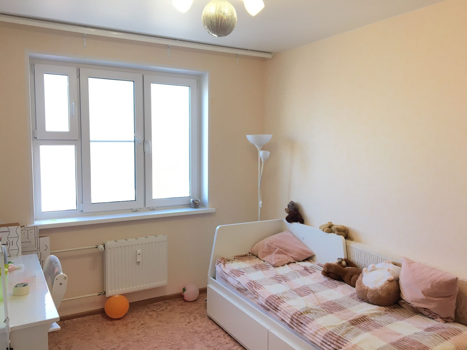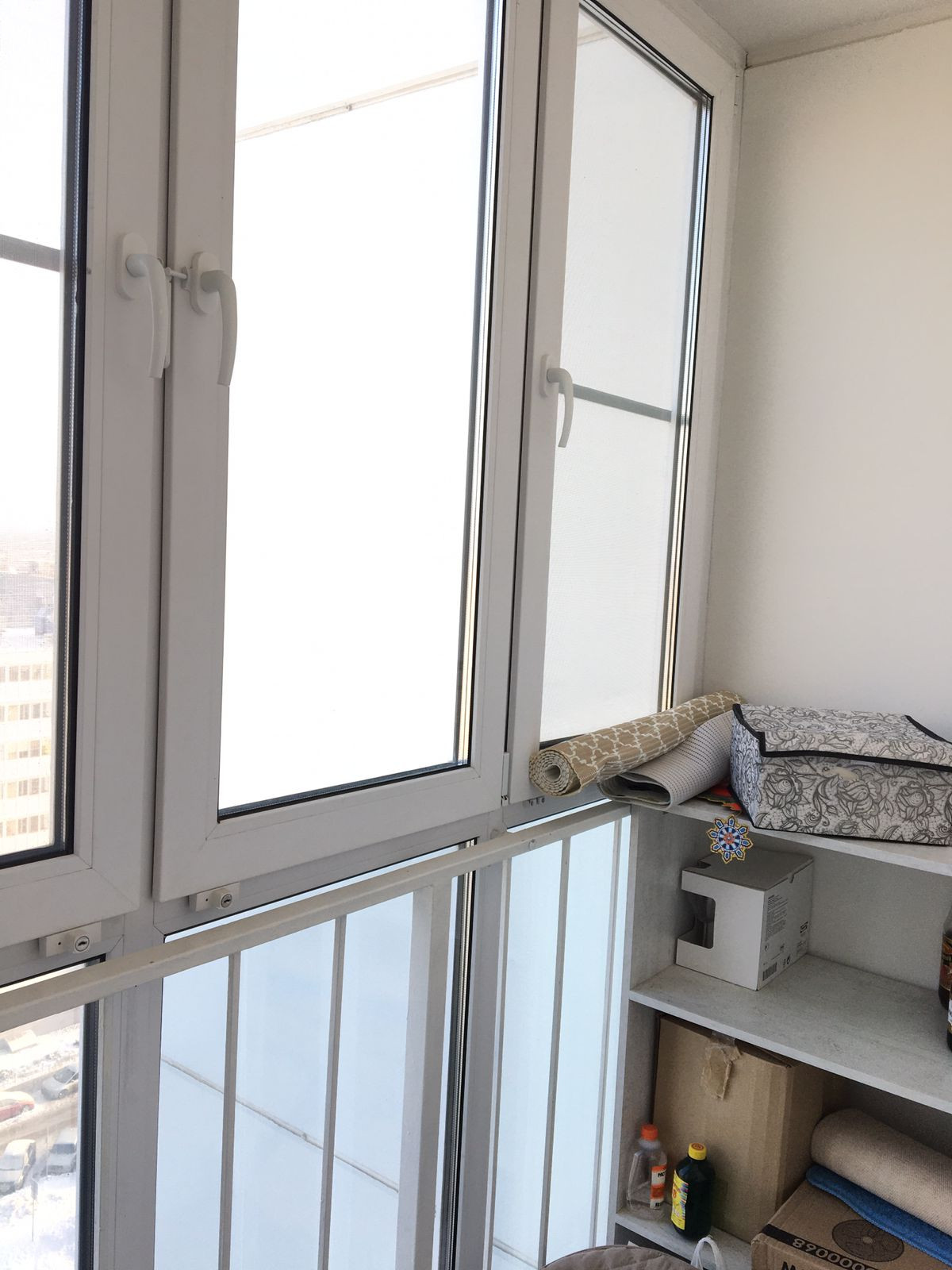 На лоджии поменяны окна на двойные стеклопакеты с замками от детей, утеплен и поднят пол.