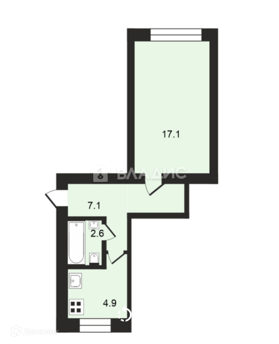 Жилая площадь 17.1 м2