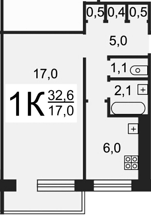 Общая площадь 33 м2