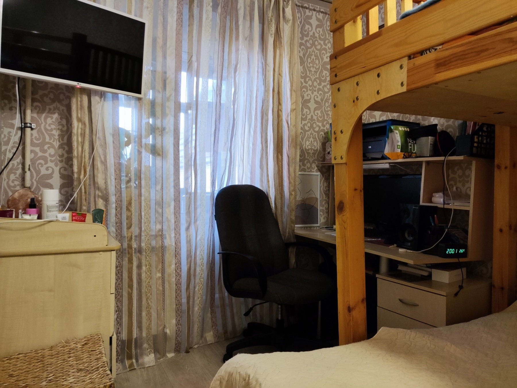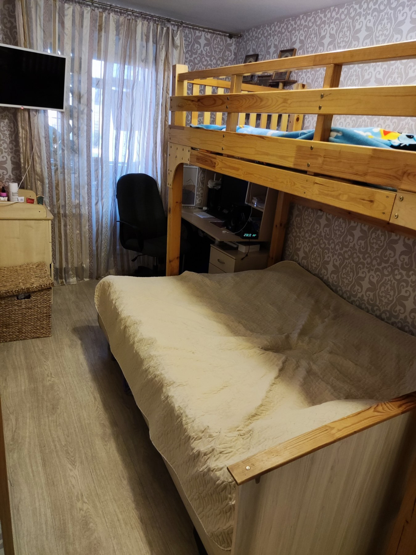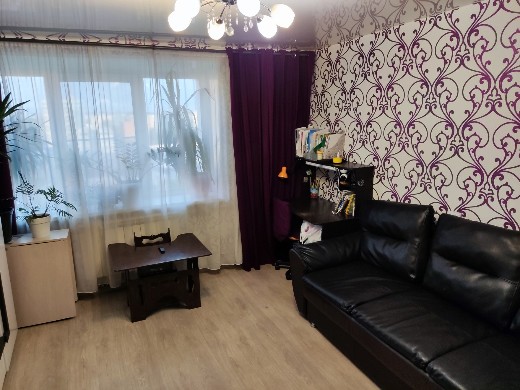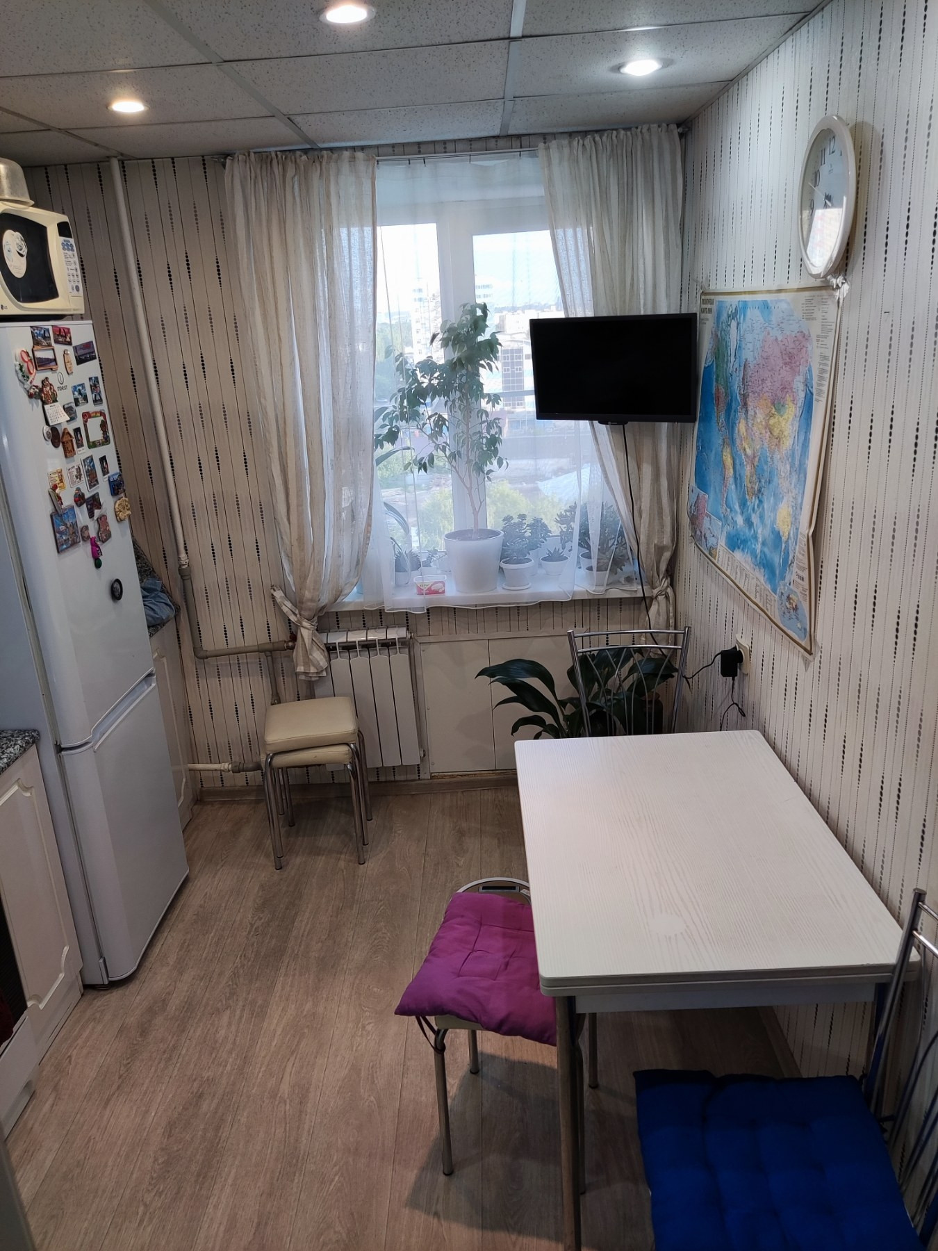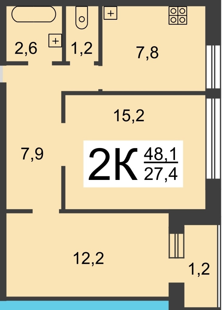 Общая площадь 48.1 кв.м, жилая 27.4 кв.м , площадь кухни 8 кв.м. Комнаты изолированные: 15,2+12,2 кв.м. Удачная планировка, установлены вместительные шкафы. Санузел раздельный. Окна пластиковые с широкими подоконниками, заменены батареи. Установлен бойлер, под окном "зимний холодильник",стоят счетчики на воду. Остается кухонный гарнитур, шкаф в прихожей, шкаф- стенли в спальной.