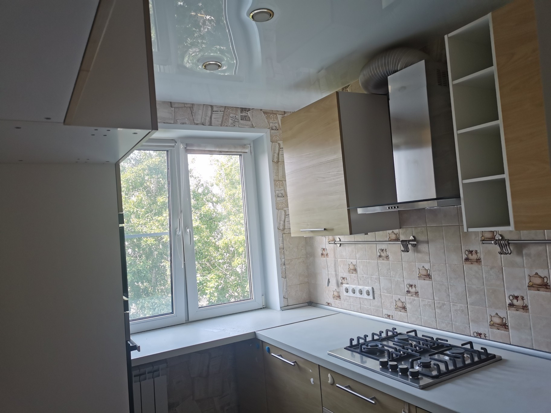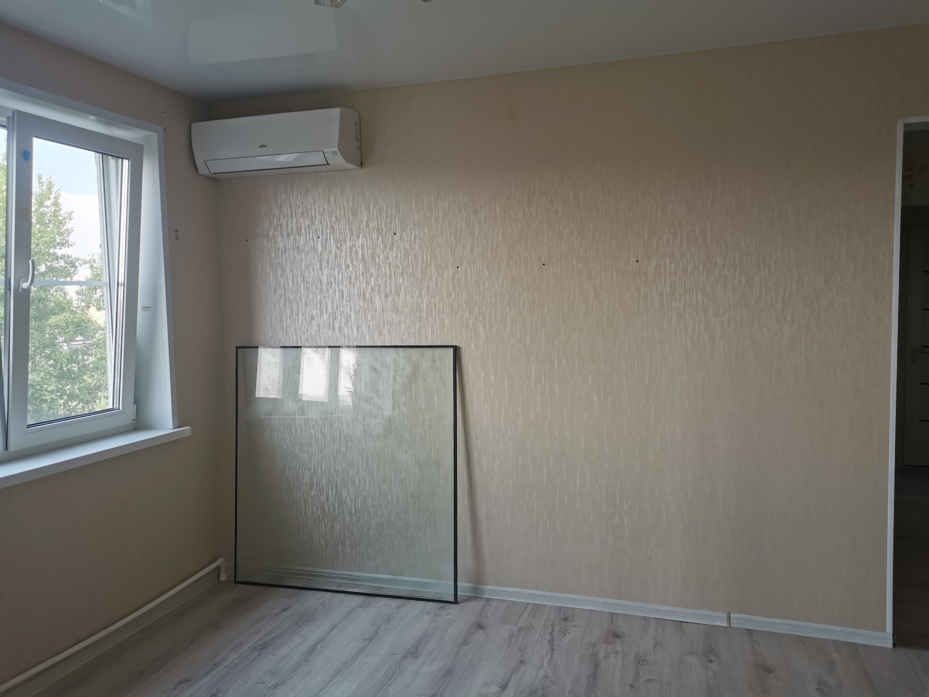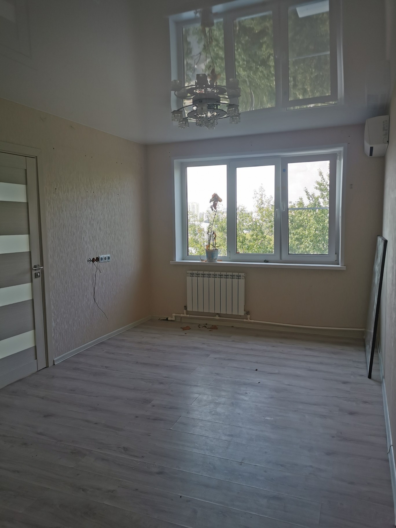 В квартире свежий ремонт, новые окна, сантехника, отопление, электропроводка, никаких стен без обоев за шкафами, ко всем шкафаи на нынешних местах подведено электричество для систем освещения, в комнате, где еще нет кондиционера выведено электричество для его установки. Можно заезжать и жить. КУХНЯ и оборудованые полностью ванна и туалет ОСТАНЕТСЯ!