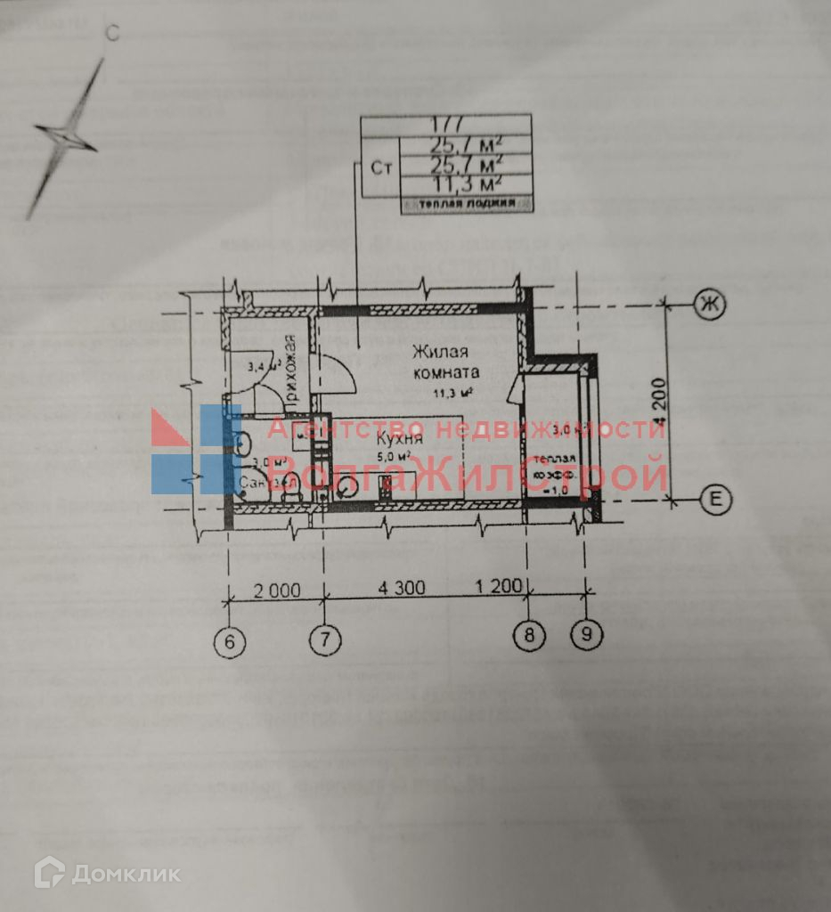 Общая площадь 25.7 м2