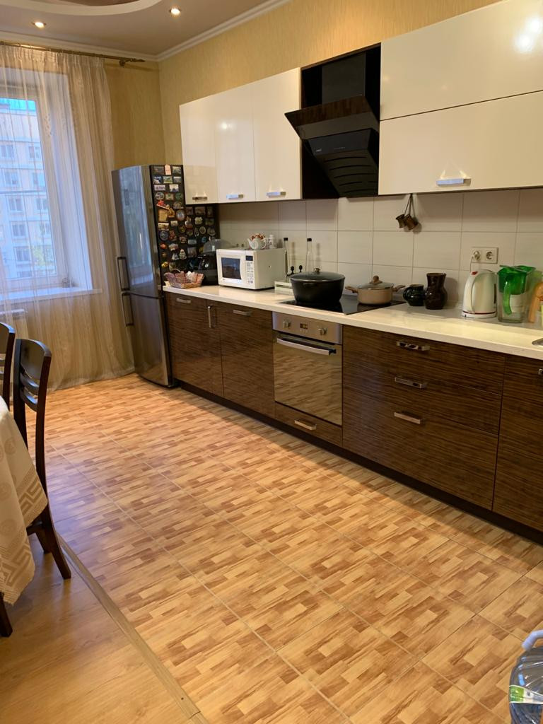 Продается квартира в элитном доме.( таких домов кирпичных больше не строят. )  Идеальное место для проживания. Евроремонт в квартире . Окна выходят на две стороны дома. Не угловая. Огромная кухня-гостиная.  Высокие 3 метровые потолки. Изолированные комнаты. Рядом все инфраструктура. Видеонаблюдение по району. Закрытая территория со шлагбаумом. Всегда есть парковочное место. На площадке всего 2 квартиры. Окна- деревянные со стеклопакетами. Закрытая лоджия с раздвижными алюминиевыми рамами. Стадион , ТЦ Седьмое небо. Метро- Стрелка. МЕТРО, Декатлон. Ярмарка в 5 минутах ходьбы. Школа в 300 м. , детсад в 300м.  Подходит под ипотеку. Полная сумма. Один собственник. Продается по есть интересующий альтернат .   Сделка застрахована.
