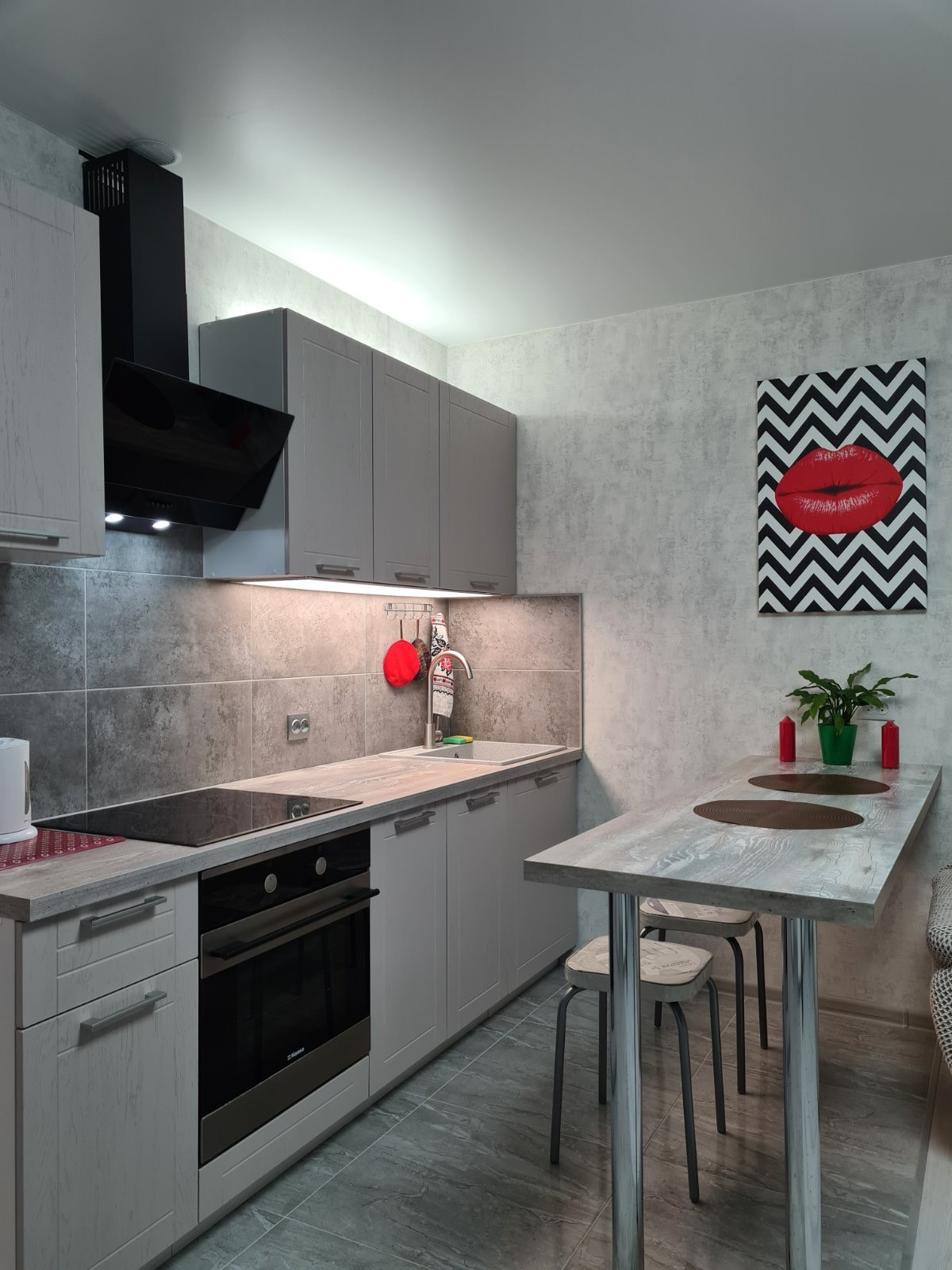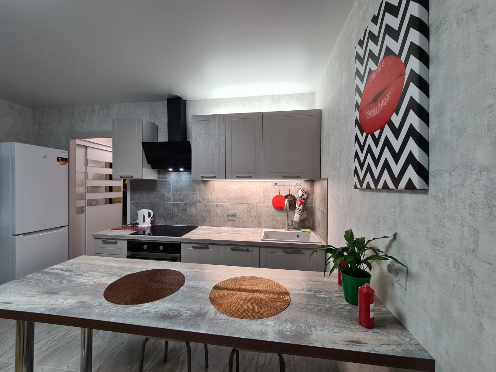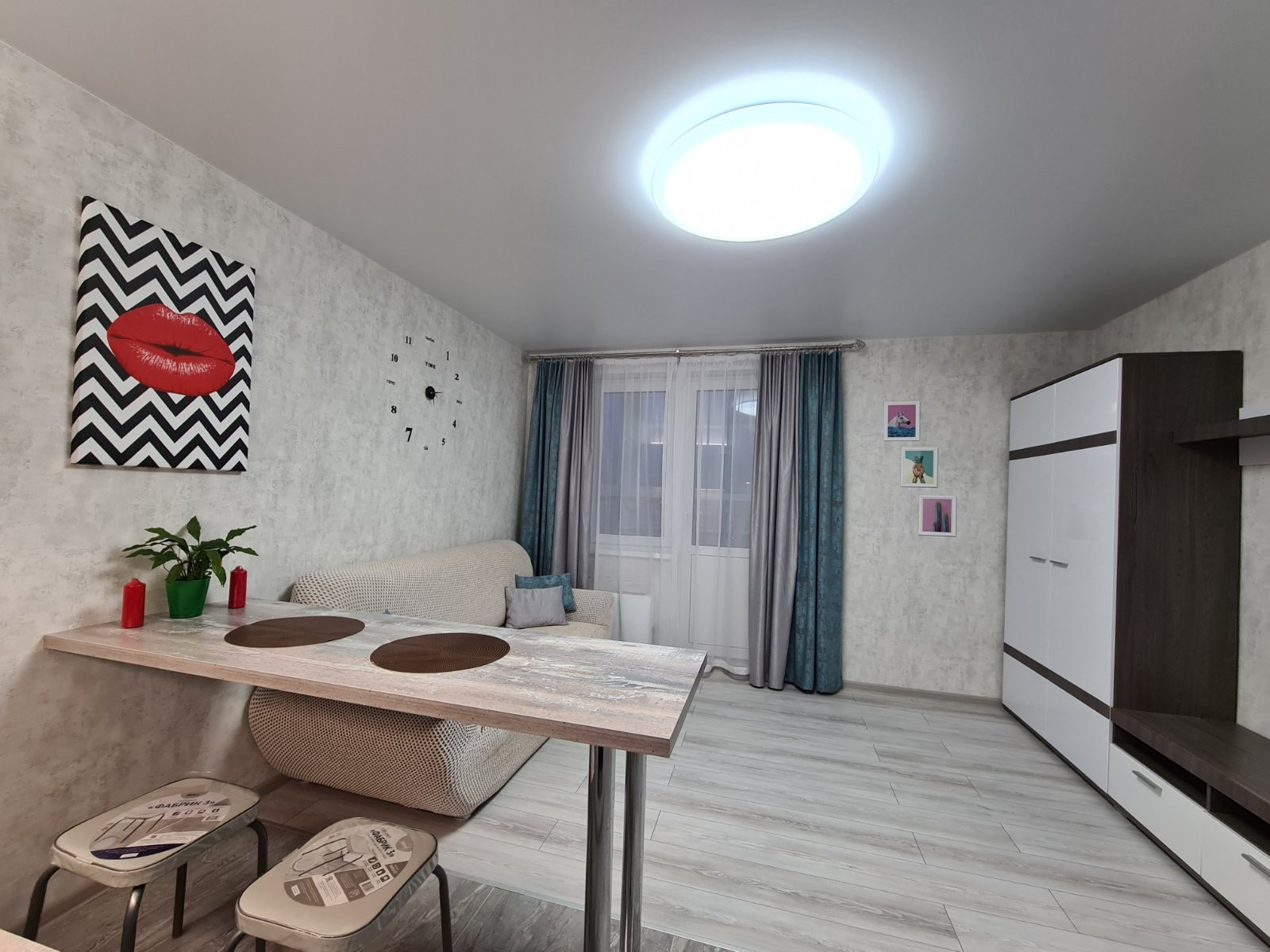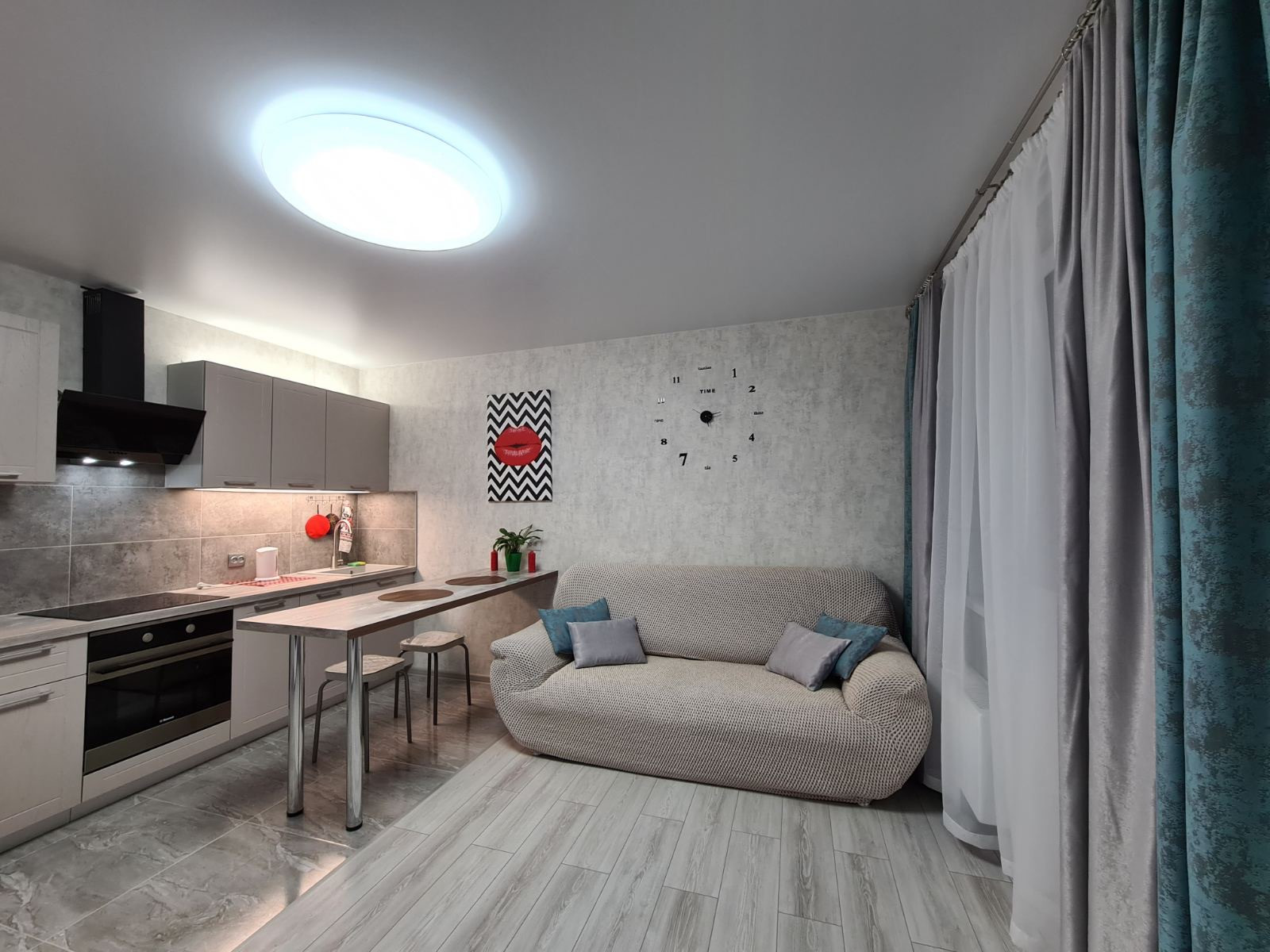 МЕБЕЛЬ: диван-кровать, стенка для гостиной, кухонный гарнитур, стол барный, стулья, гардеробная.