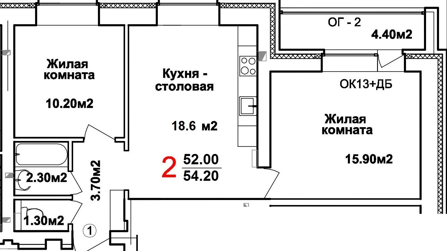 Общая площадь 55.3 м2