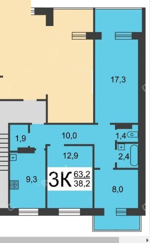 Жилая площадь 38.2 м2
