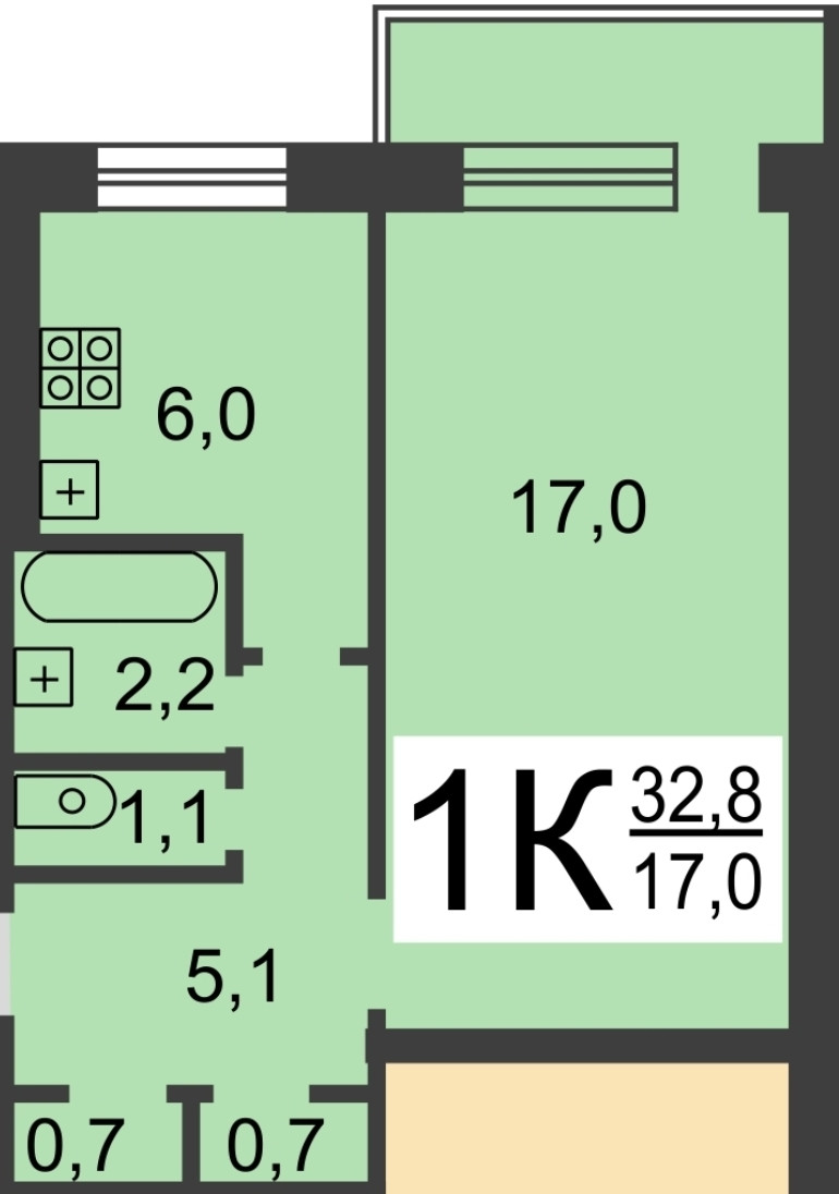 Общая площадь 32 м2