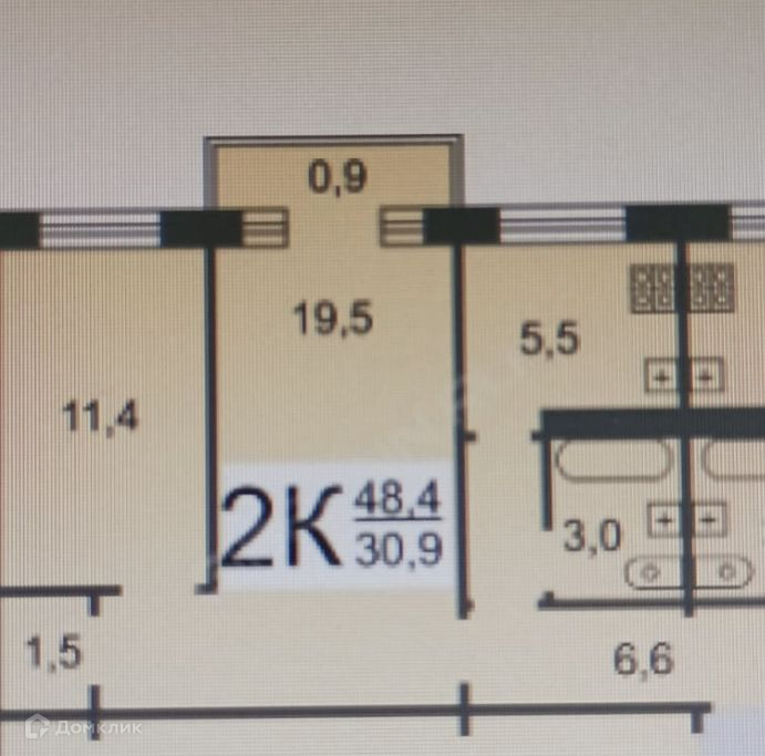 Жилая площадь 30.9 м2