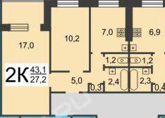 Общая площадь 43.3 м2