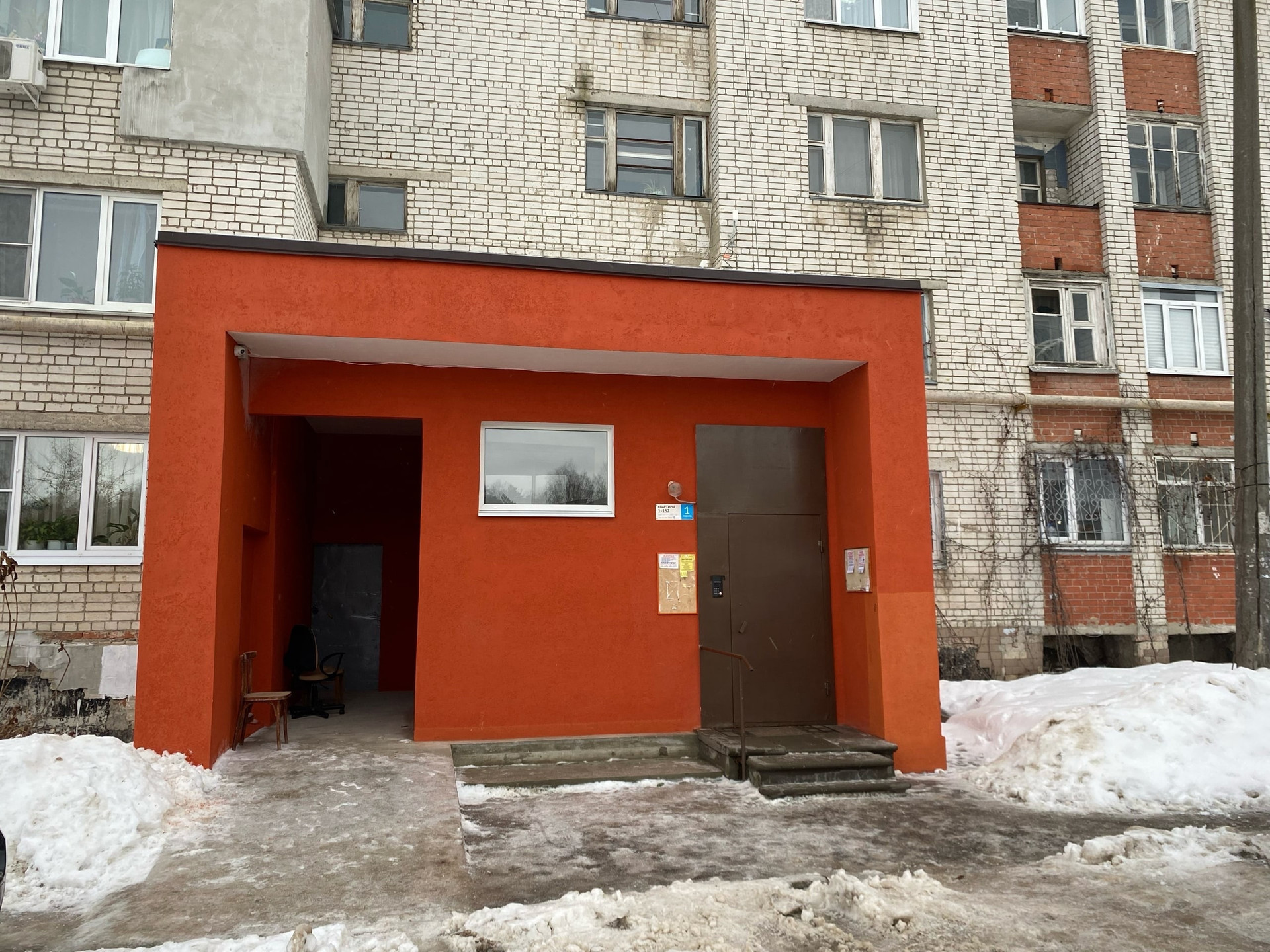 Окна выходят во двор. В подъезде сделан ремонт.
