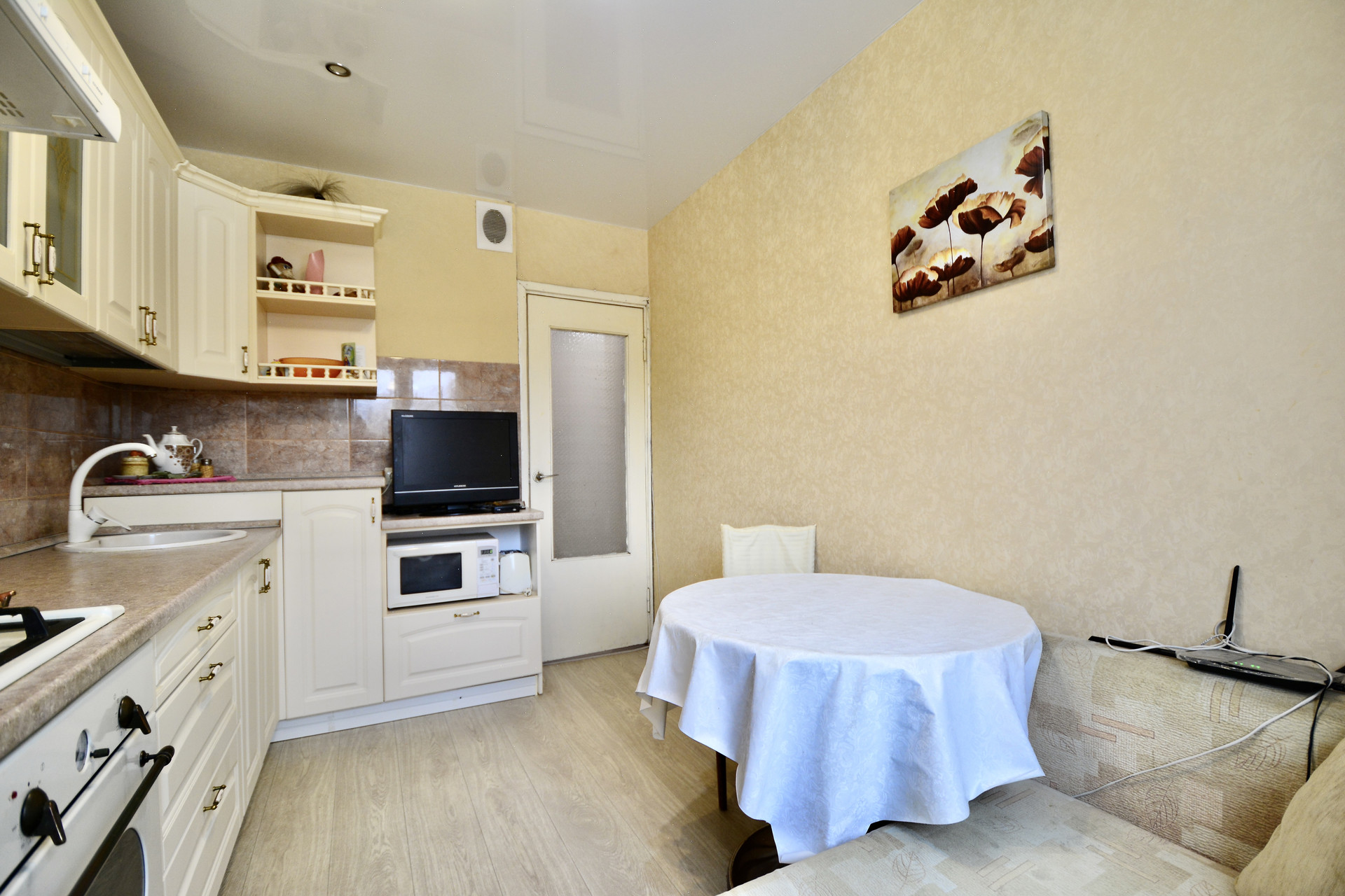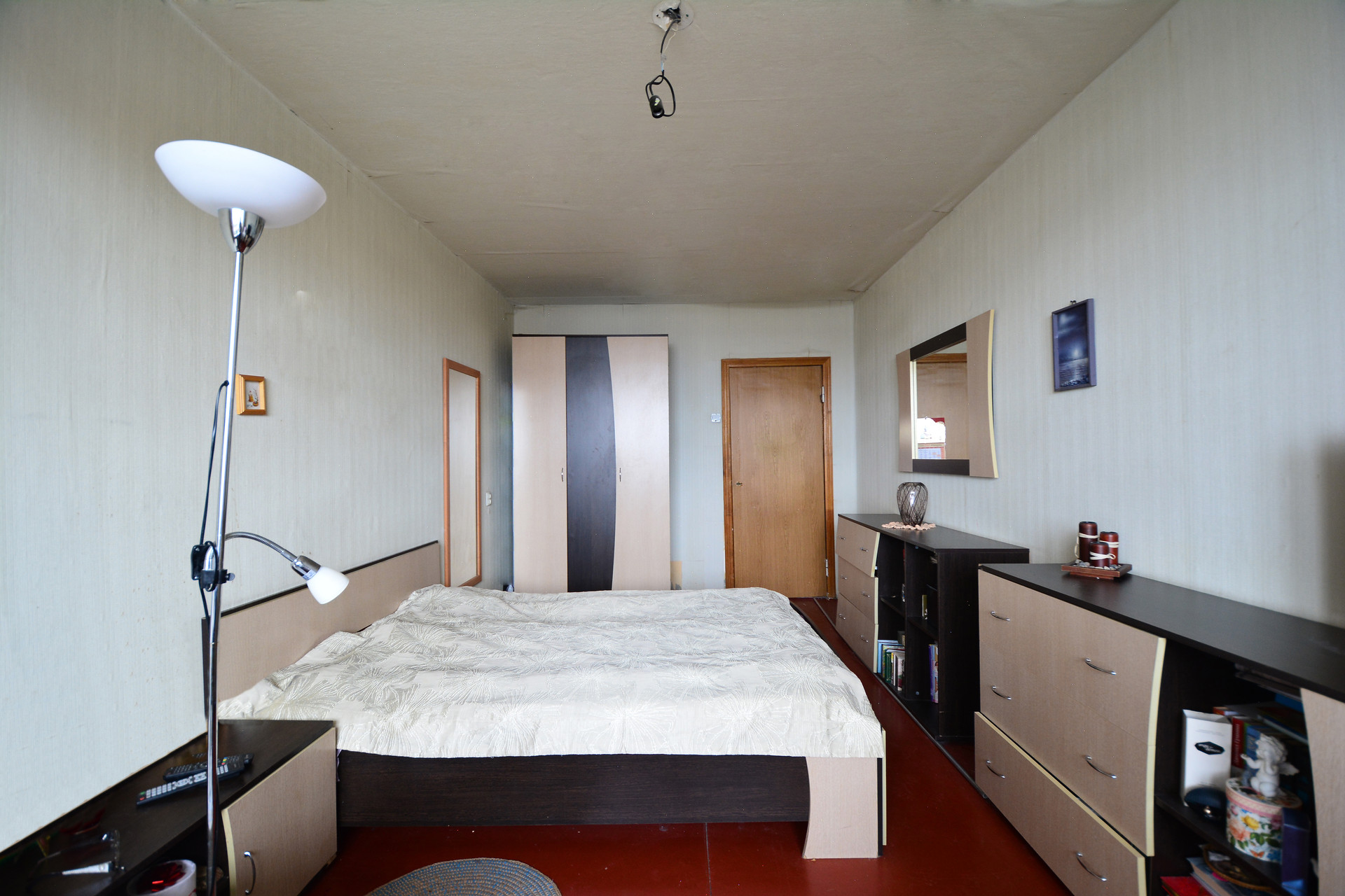 Общая площадь квартиры - 68 кв.м с учетом лоджии и балкона, две комнаты по 12,7 и 8,3 кв.м, гостиная - 16,4 кв.м. На кухне, в комнате и в прихожей выполнен свежий ремонт: установлен кухонный гарнитур, заменено окно на ПВХ, сделан натяжной потолок. В двух других комнатах и в санузлах требуется ремонт. Санузел раздельный. Из гостиной имеется выход на просторную лоджию, из комнаты - на балкон. В прихожей есть кладовая с гардеробом.