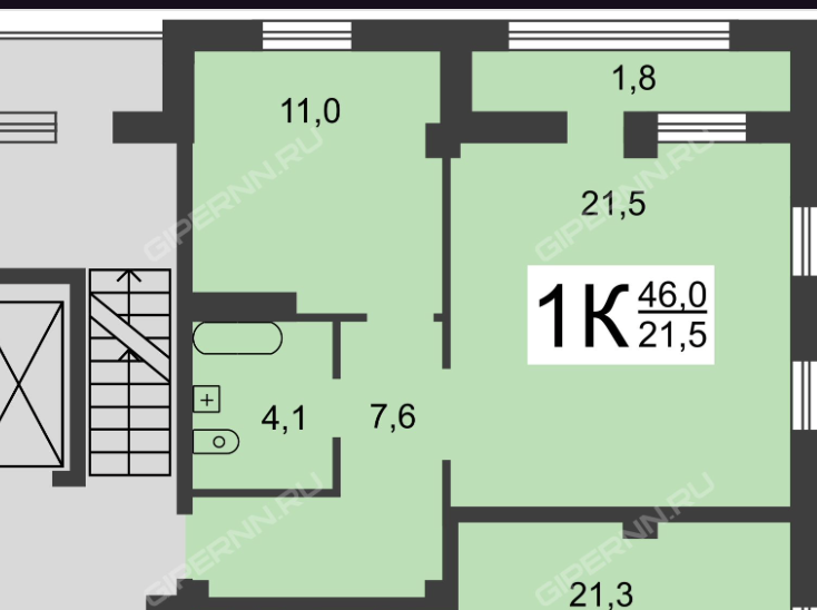 Жилая площадь 21.5 м2