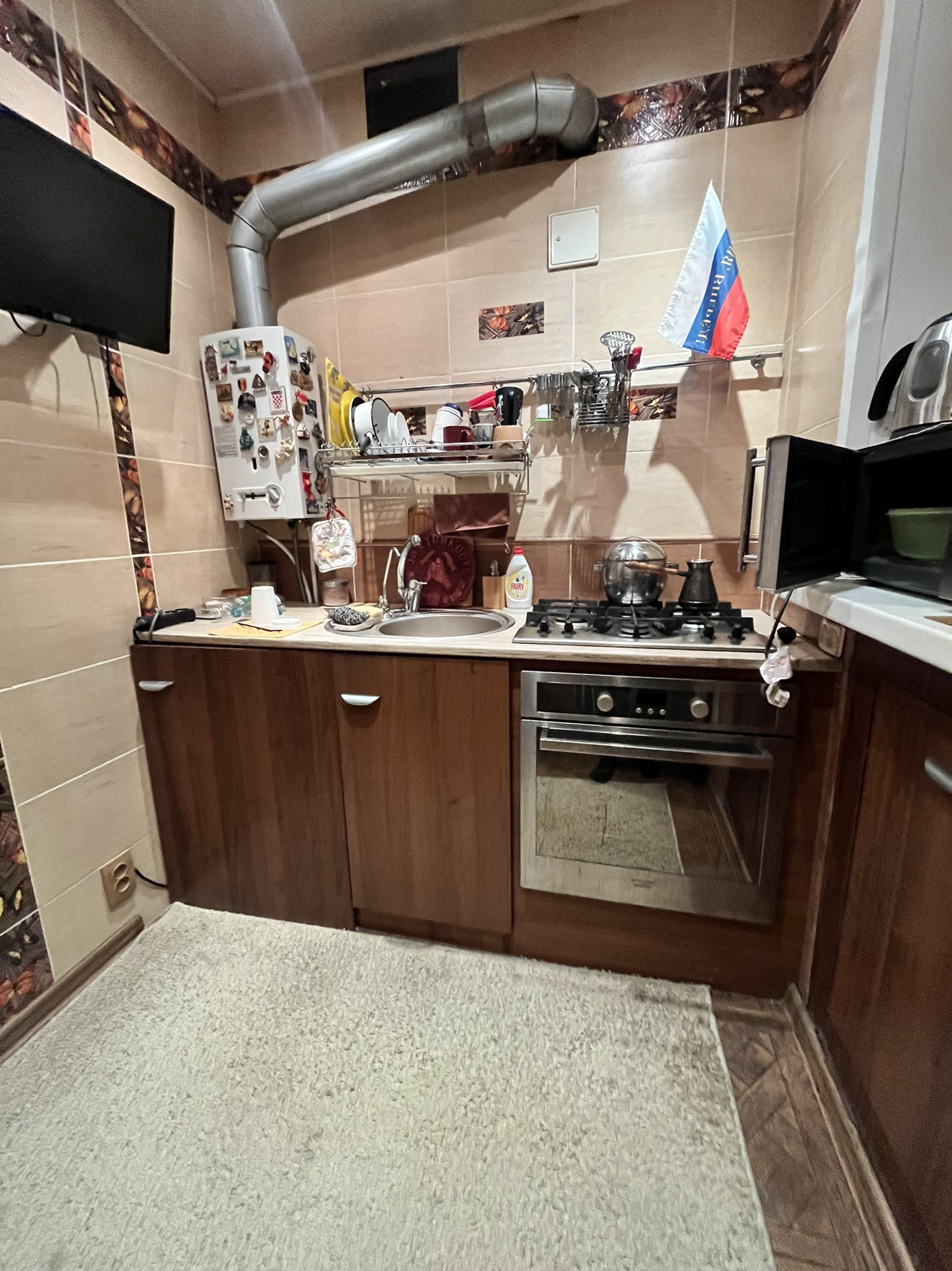 На кухне хорошая автоматическая газовая колонка Bosch.  Все в хорошем рабочем состоянии. Установлена сигнализация, добротная входная дверь!
