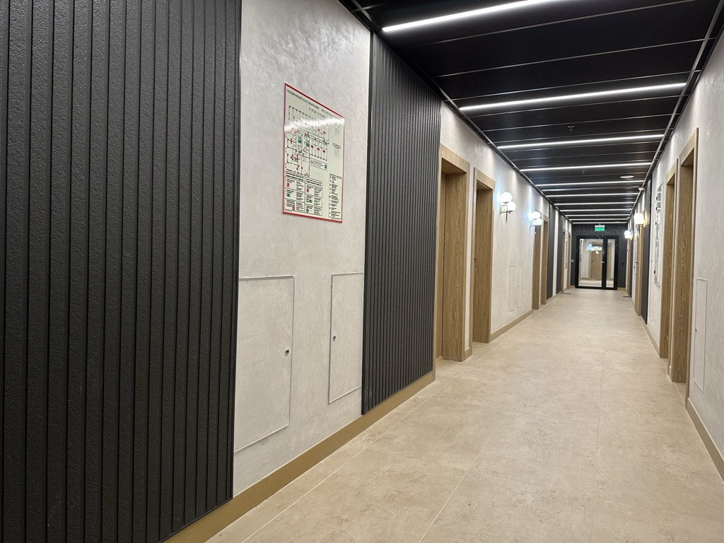 Шикарная входная группа здания, пол и стены выложены керамогранитом, даже стойка ресепшн выполнена из мрамора. Бесшумные скоростные импортные лифты, стильные холлы и места общего пользования, качественные материалы для отделки.