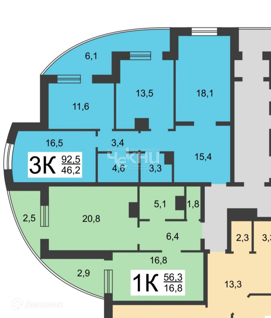 Общая площадь 92.5 м2