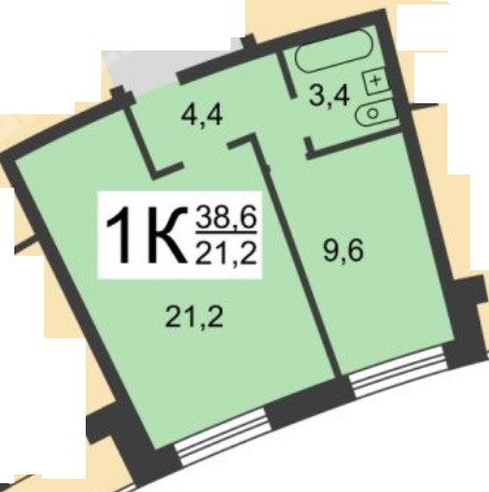 Общая площадь 38 м2