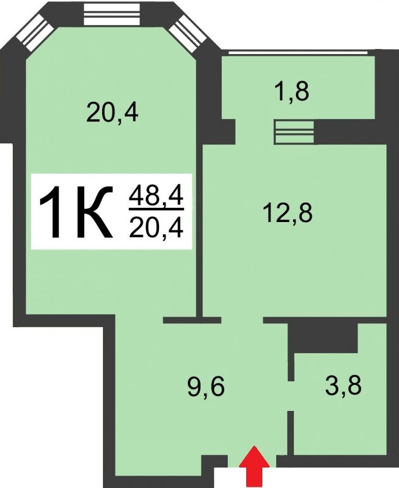Общая площадь 48.4 м2