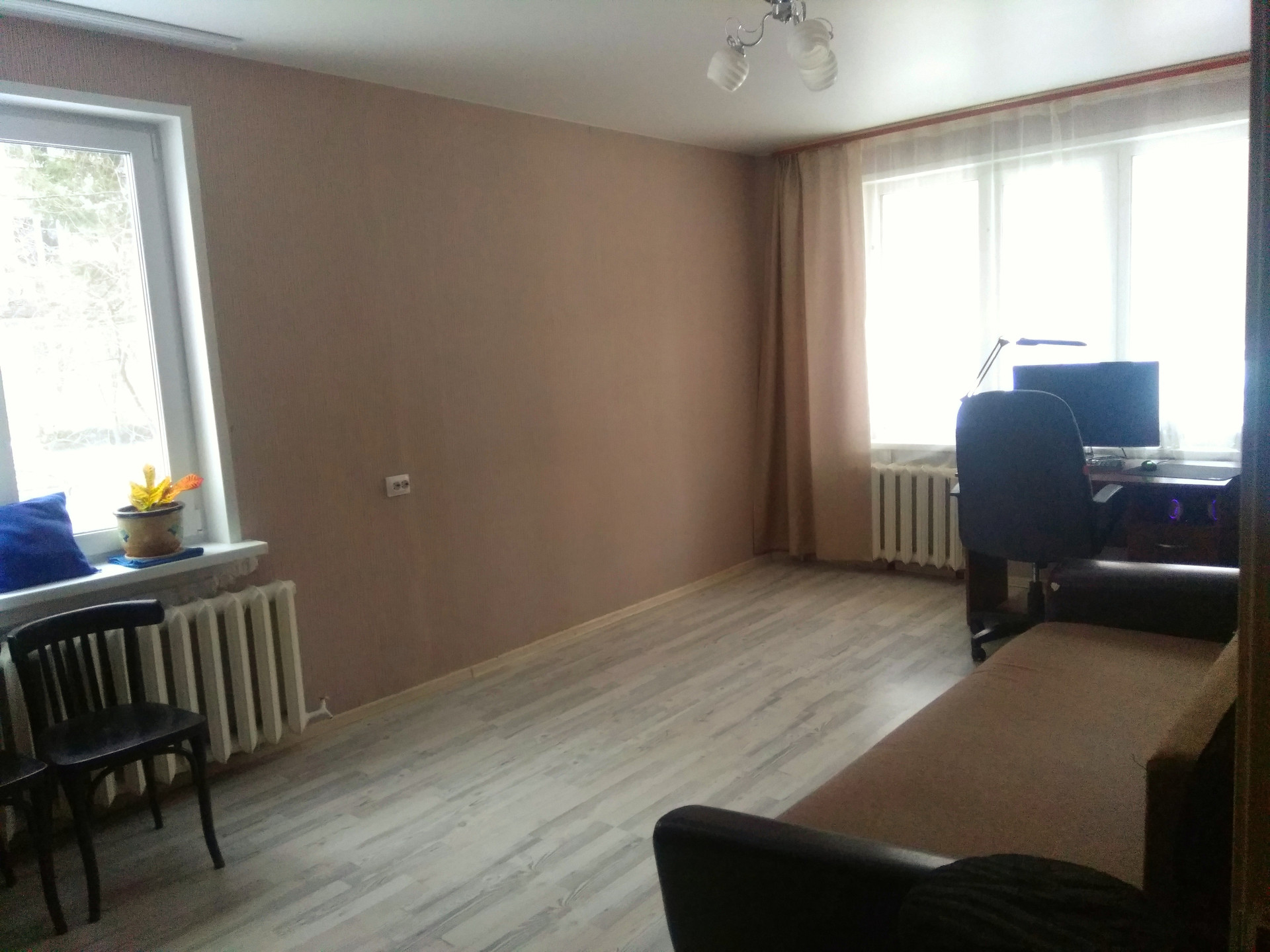 В квартире выполнен частичный ремонт-установлены пластиковые окна, ламинат, натяжной потолок, двери, новые антресоли, на кухне-новые плита, колонка, трубы.