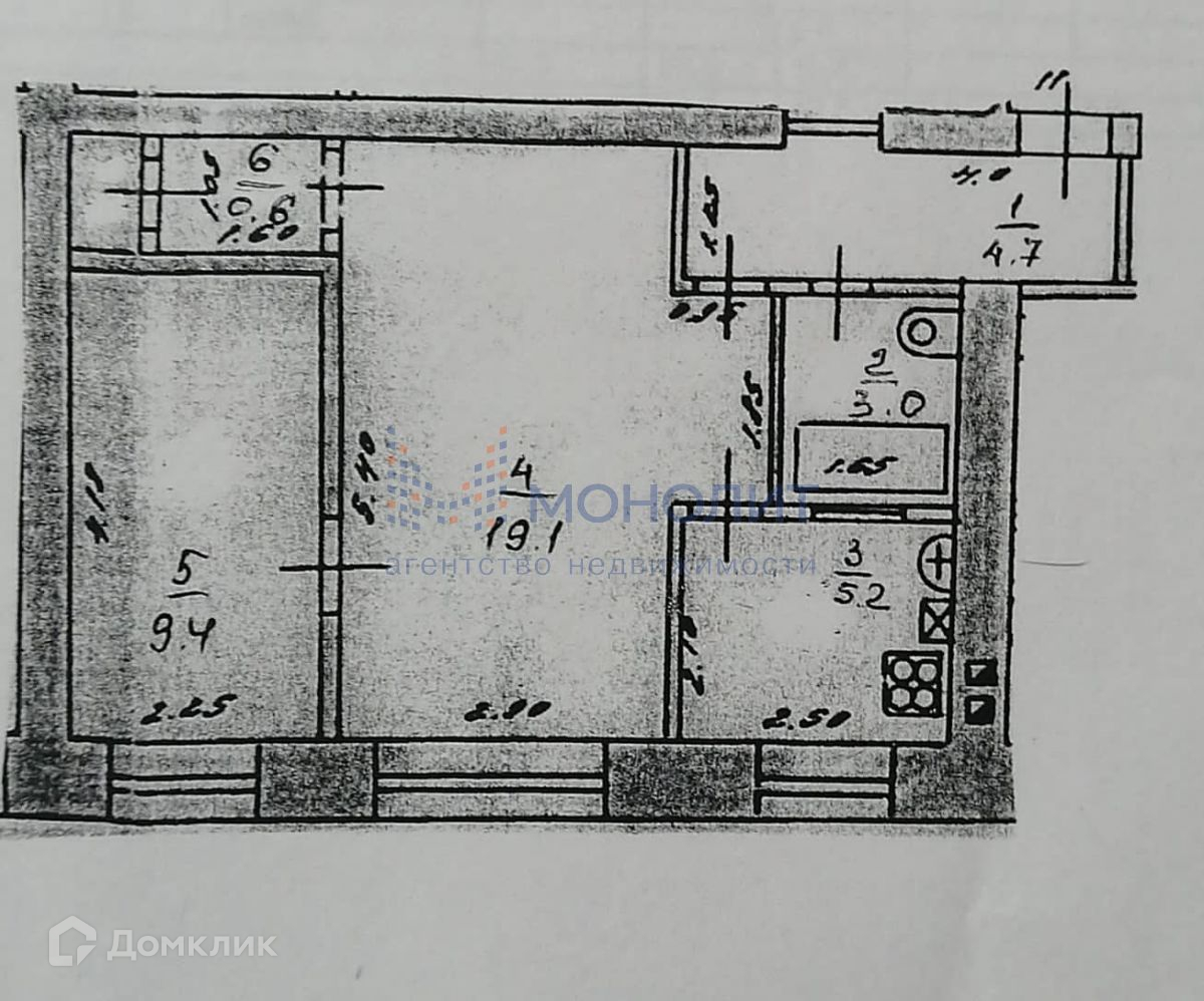 - комнаты 9.4 м2, 19.1 м2
