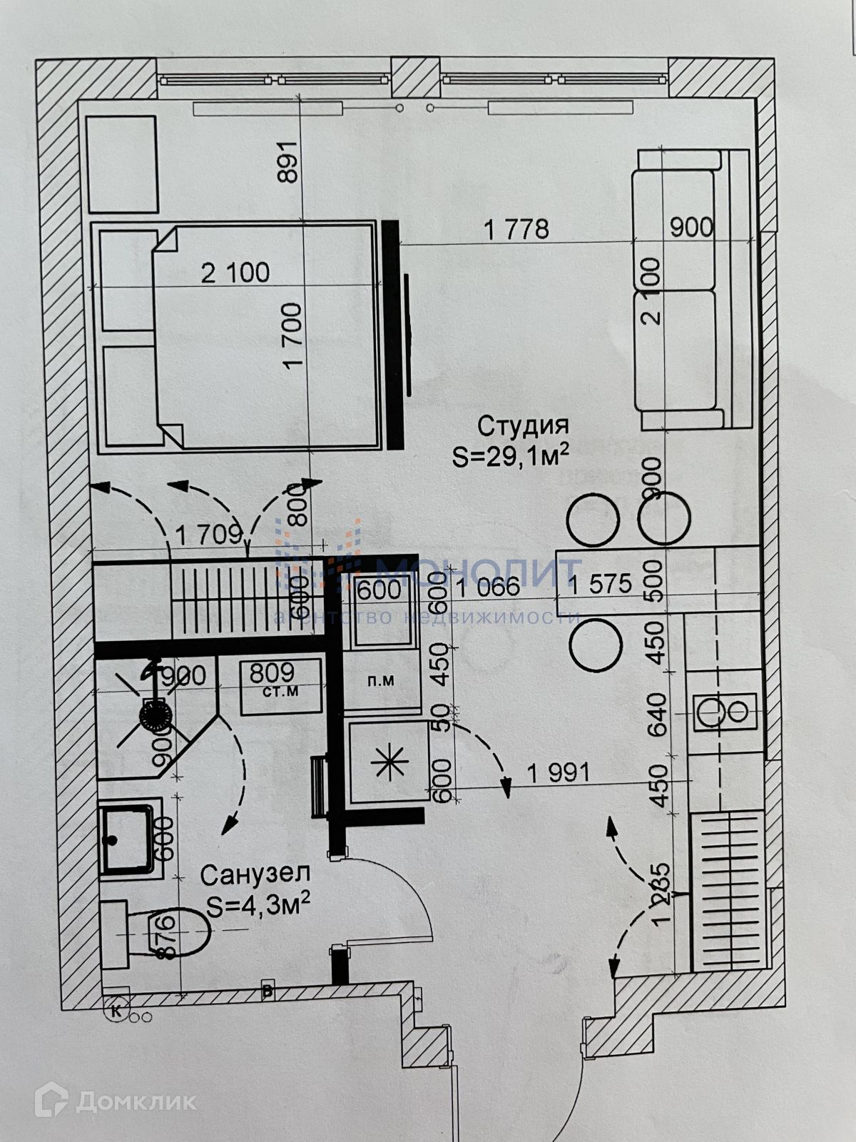 Общая площадь 37 м2