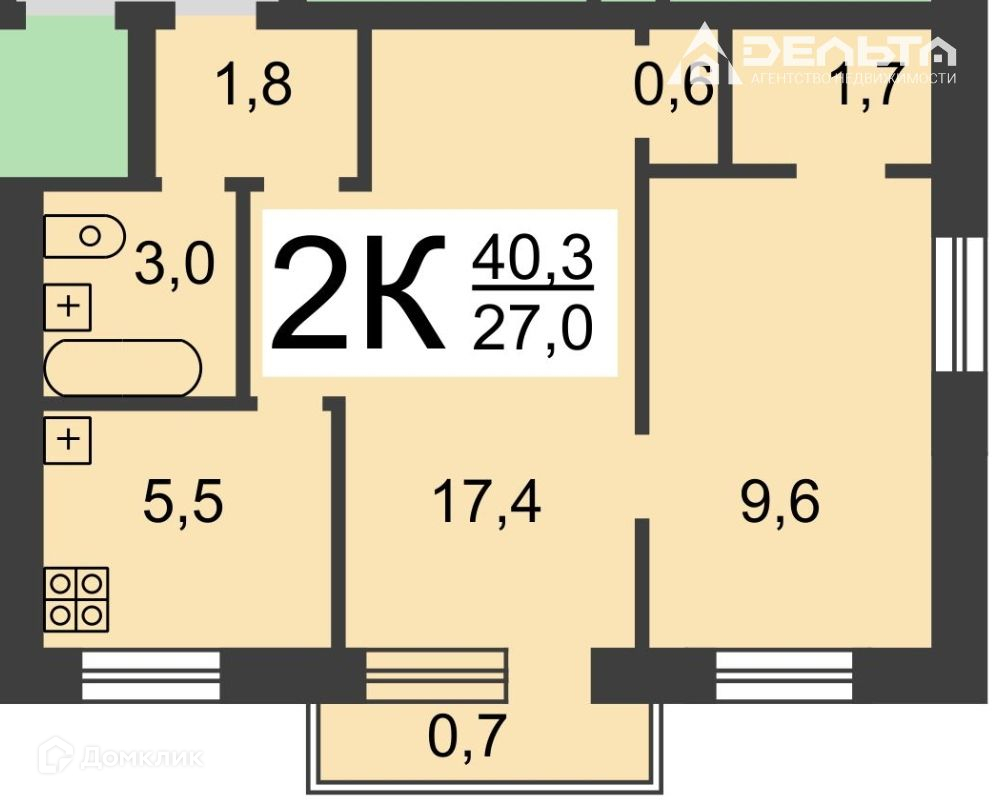 Общая площадь 40 м2