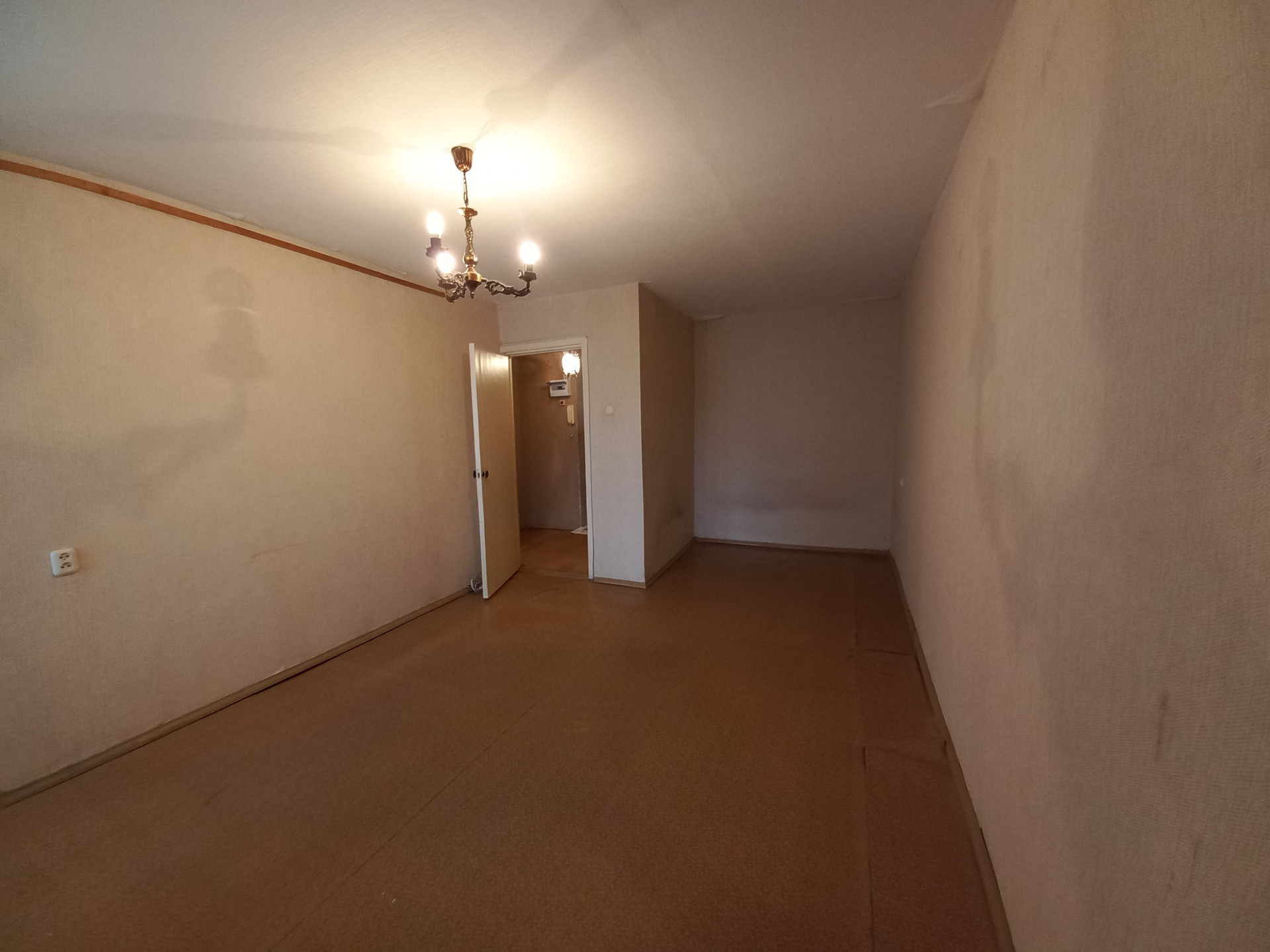 Общая площадь квартиры 38 кв м, комната 19 кв м, 8,1 кв м, квадратная прихожая.