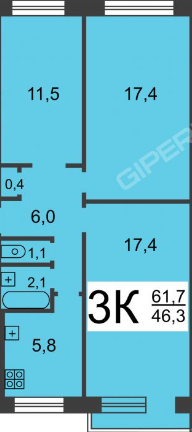 Общая площадь 61.7 м2