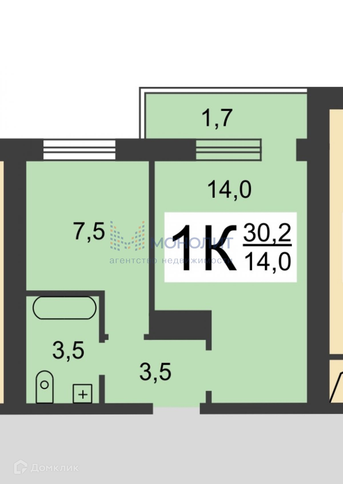 Общая площадь 30.2 м2