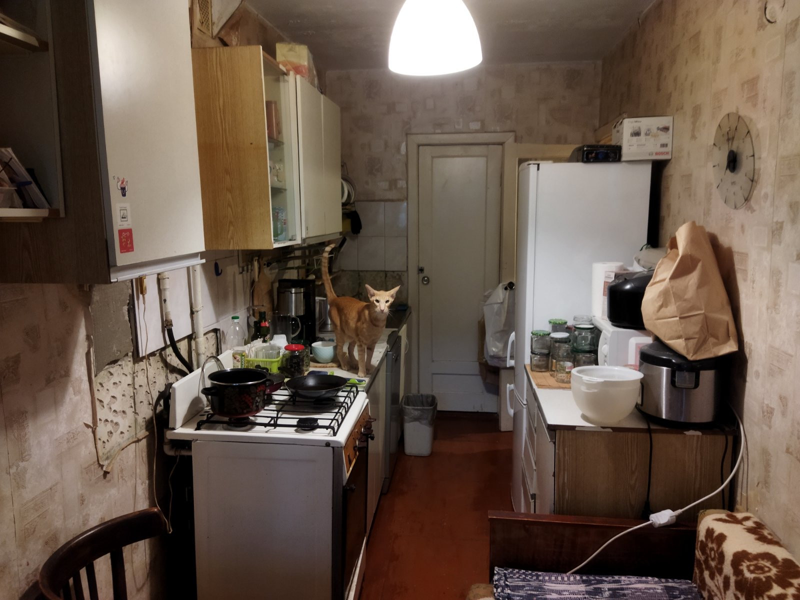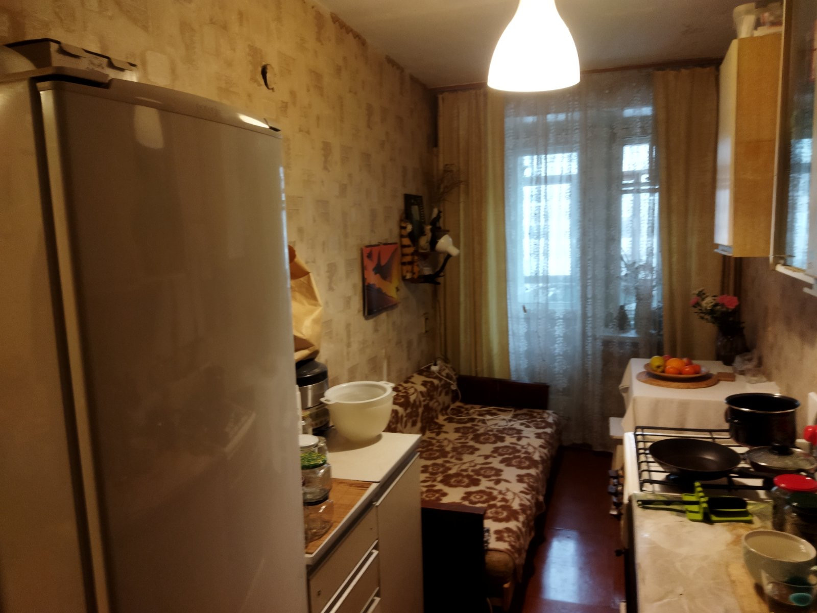 Большая кухня. Стена между кухней и комнатой не несущая, при желании можно сделать студию или расширить кухню.