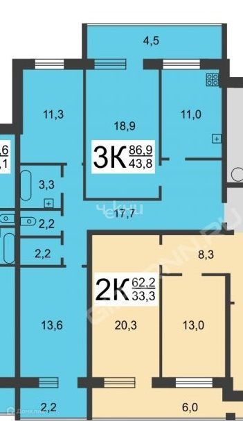 Балкон, лоджия 2 лоджии