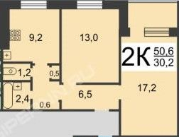 Общая площадь 50.9 м2