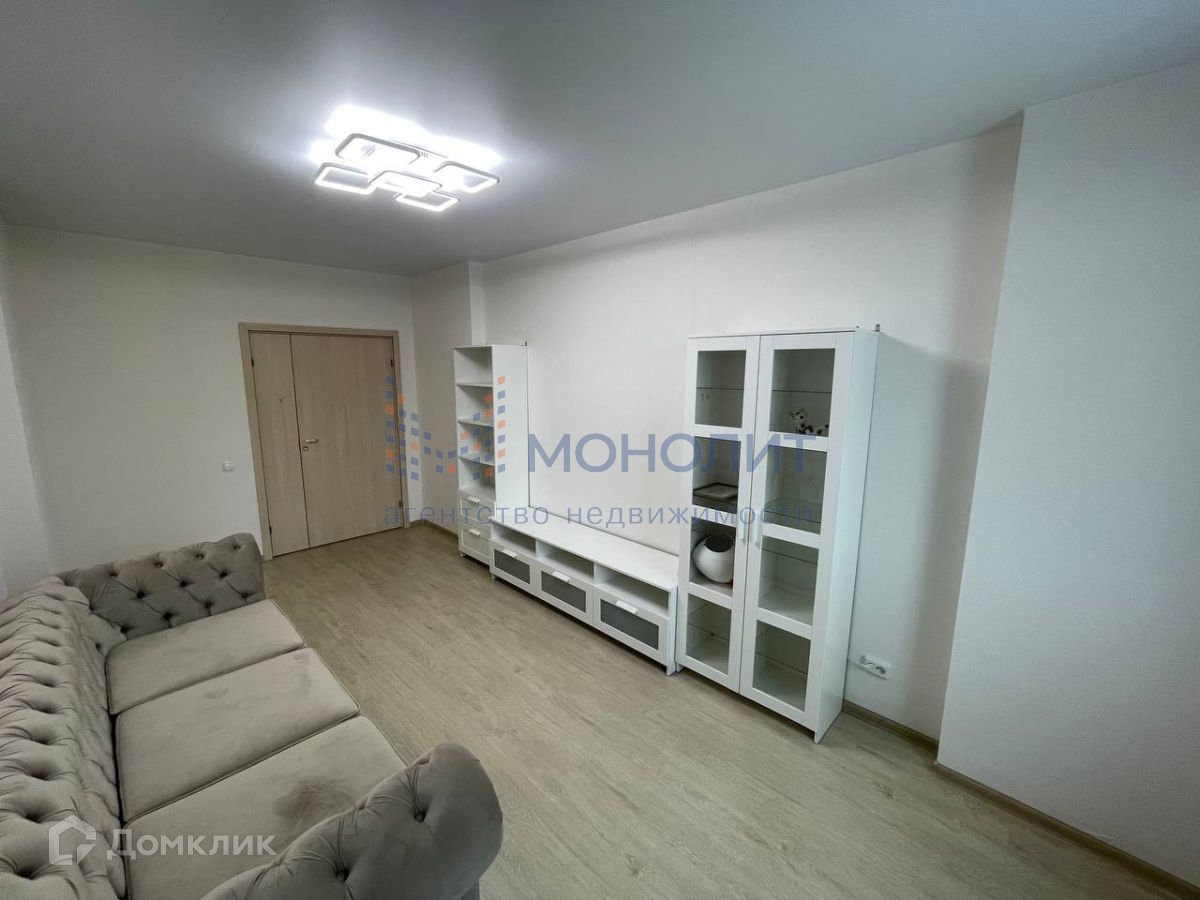 В гостиной стильный диван, стенка.