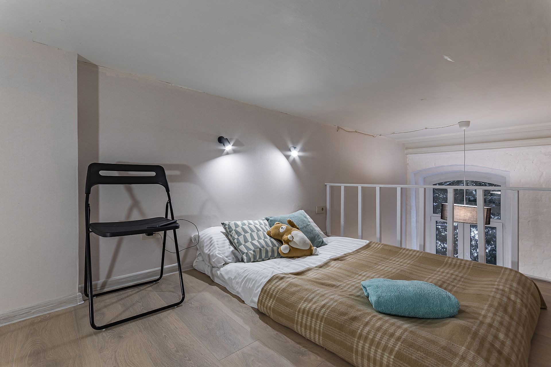 втором этаже — спальня и место под шкаф.