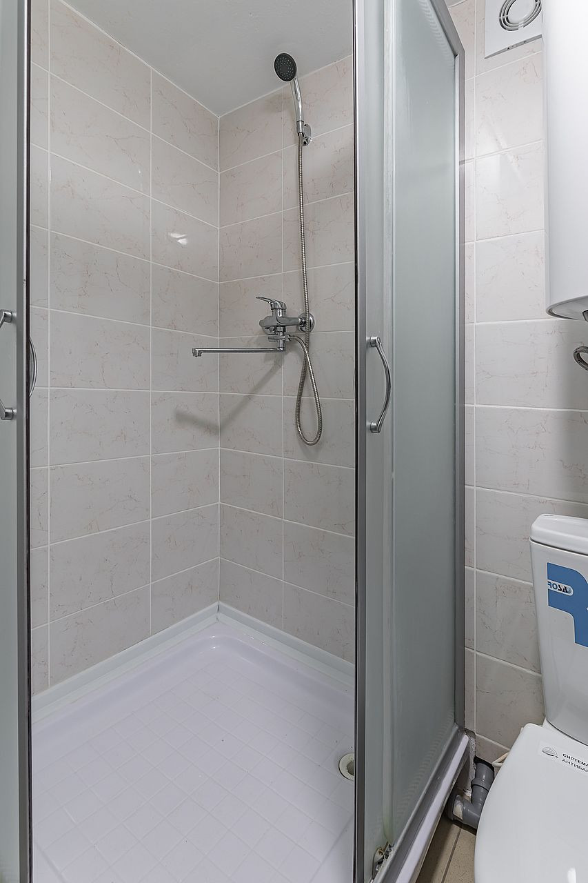 душевая кабина, проведена вентиляция. Выполнена подводка под стиральную машину (вода и канализация). Санузел отделан плиткой в мокрых зонах,