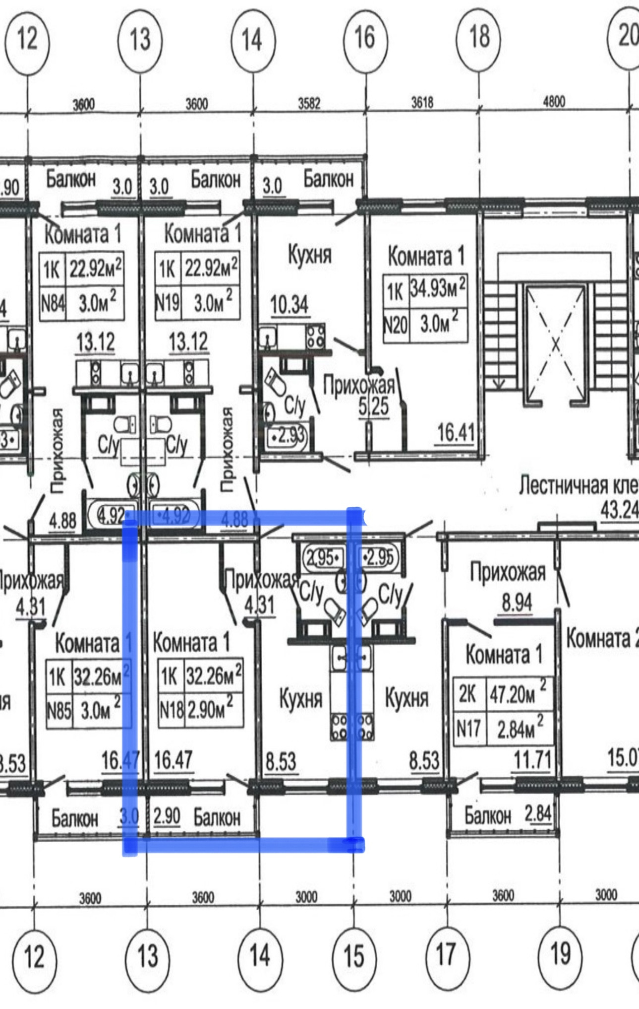 Общая площадь 32 м2