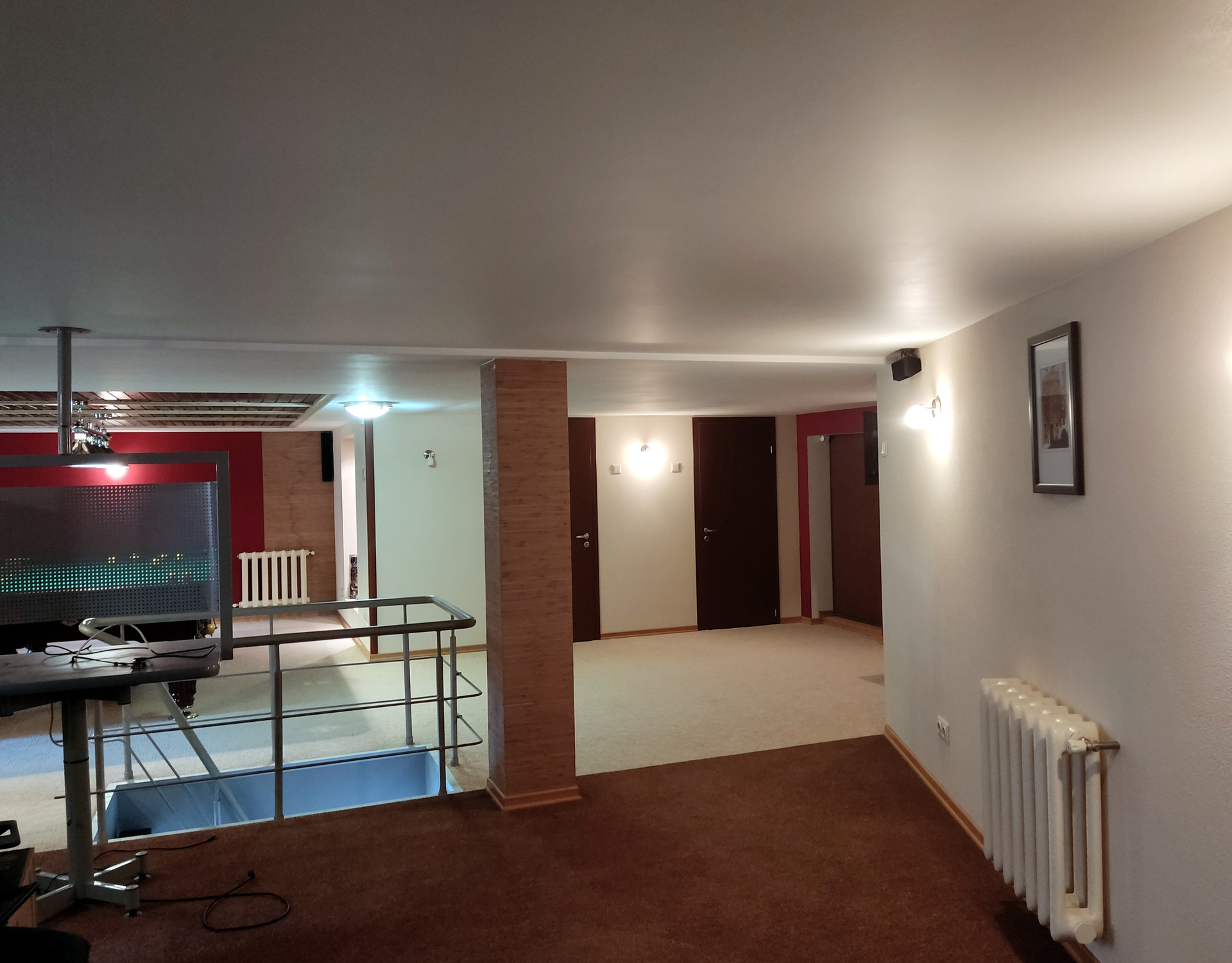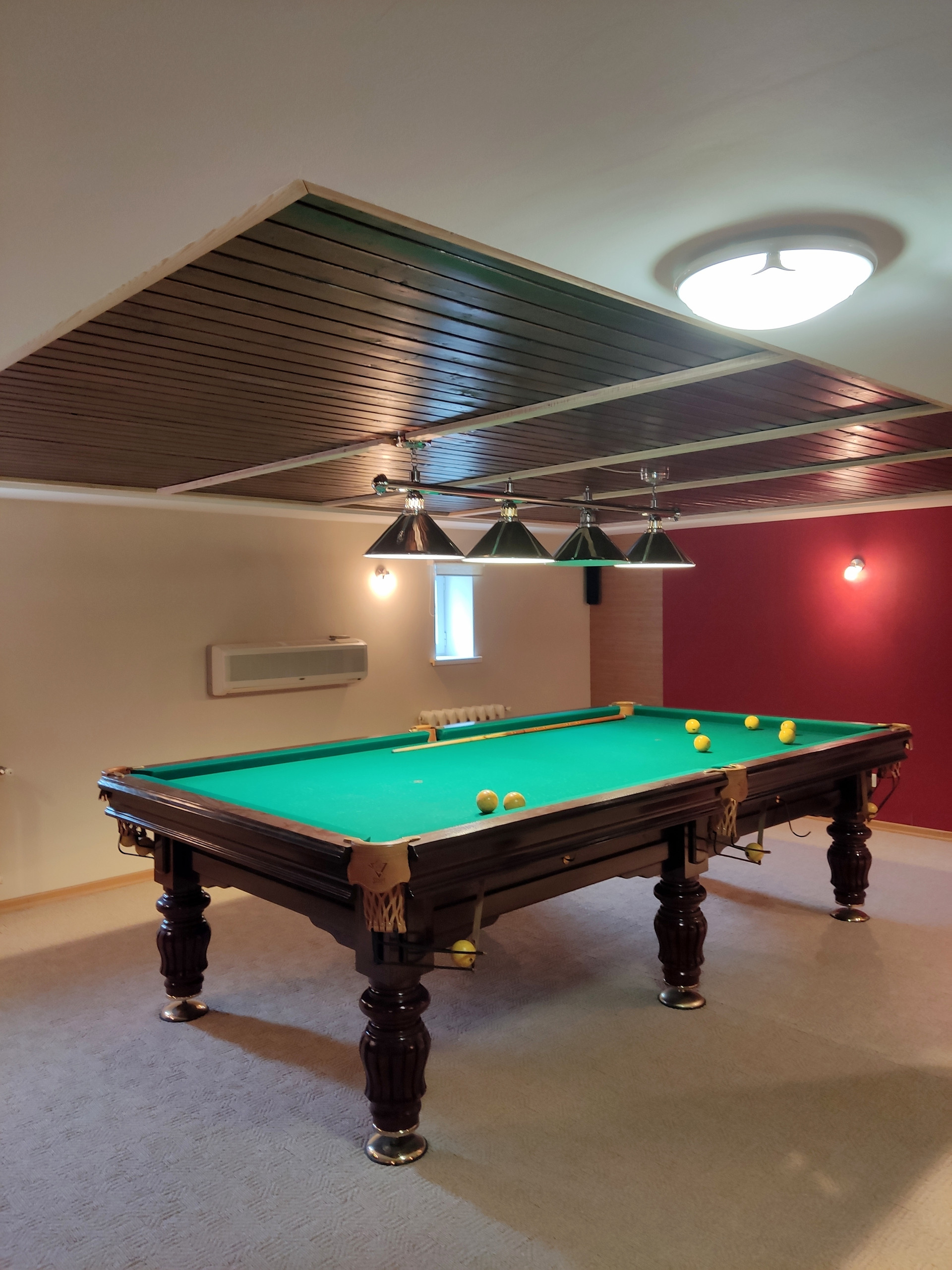 На втором этаже бильярд, барная стойка, дартс, кладовка, санузел и много места для отдыха или для занятий танцами- музыку не будет слышно соседям благодаря специальной шумоизоляции