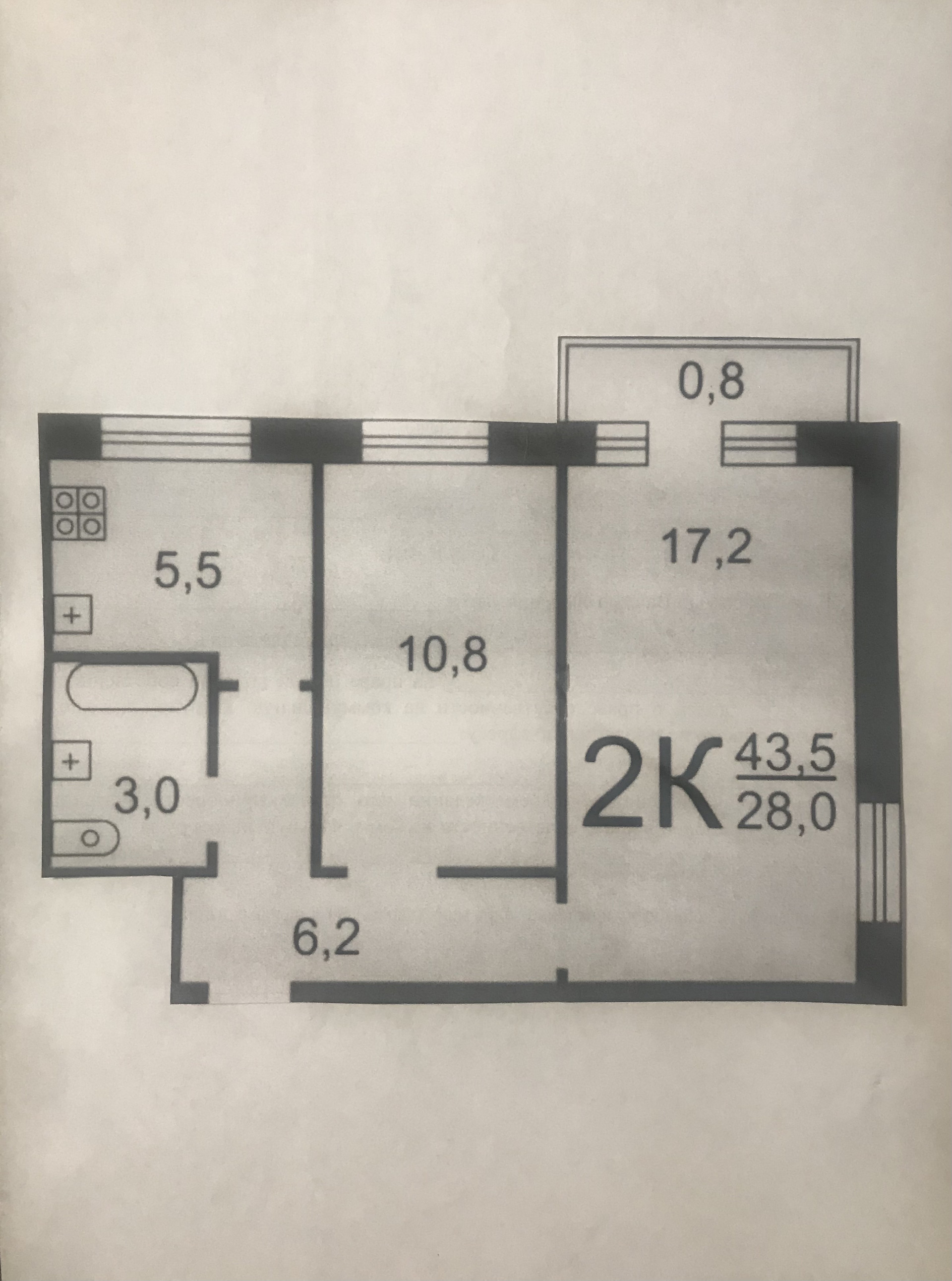 Общая площадь 43.5 м2