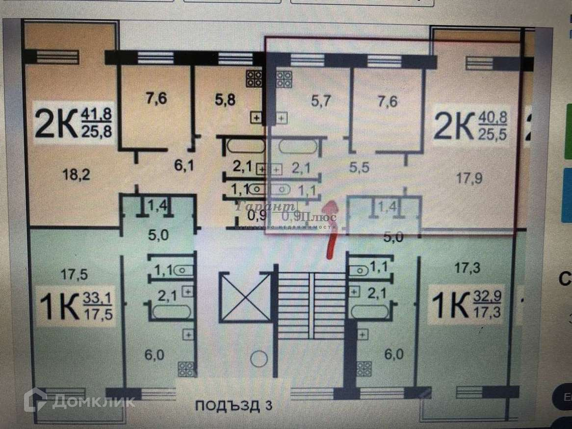 Общая площадь 41.8 м2