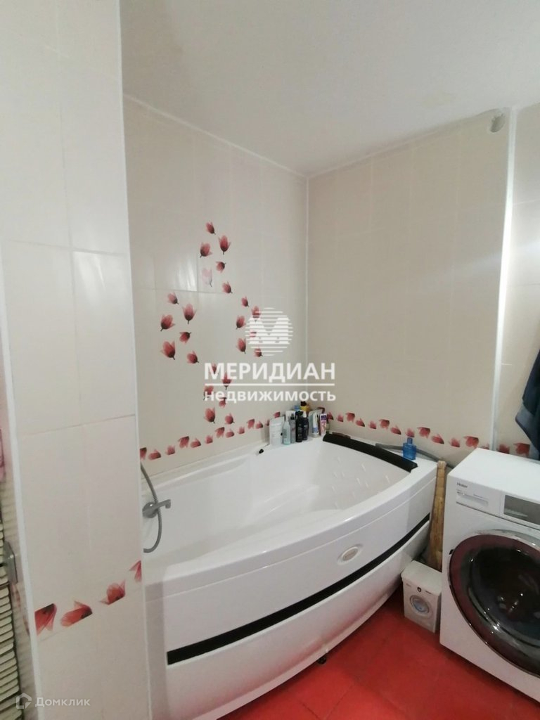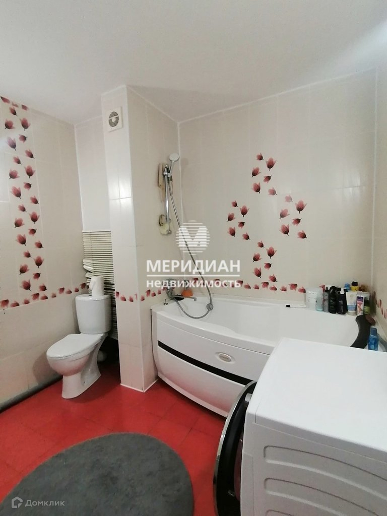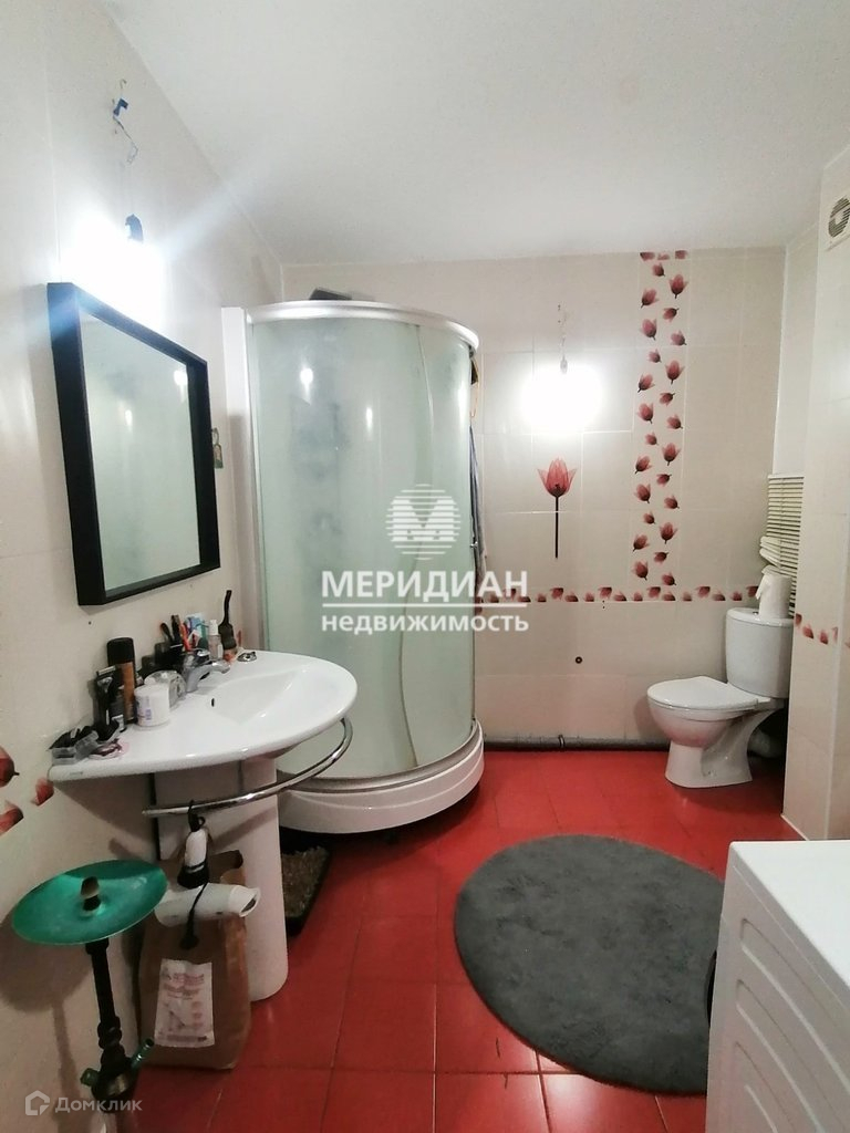 Санузел очень большой, в кафеле. Есть душевая кабина и ванна. Установлены счетчики.